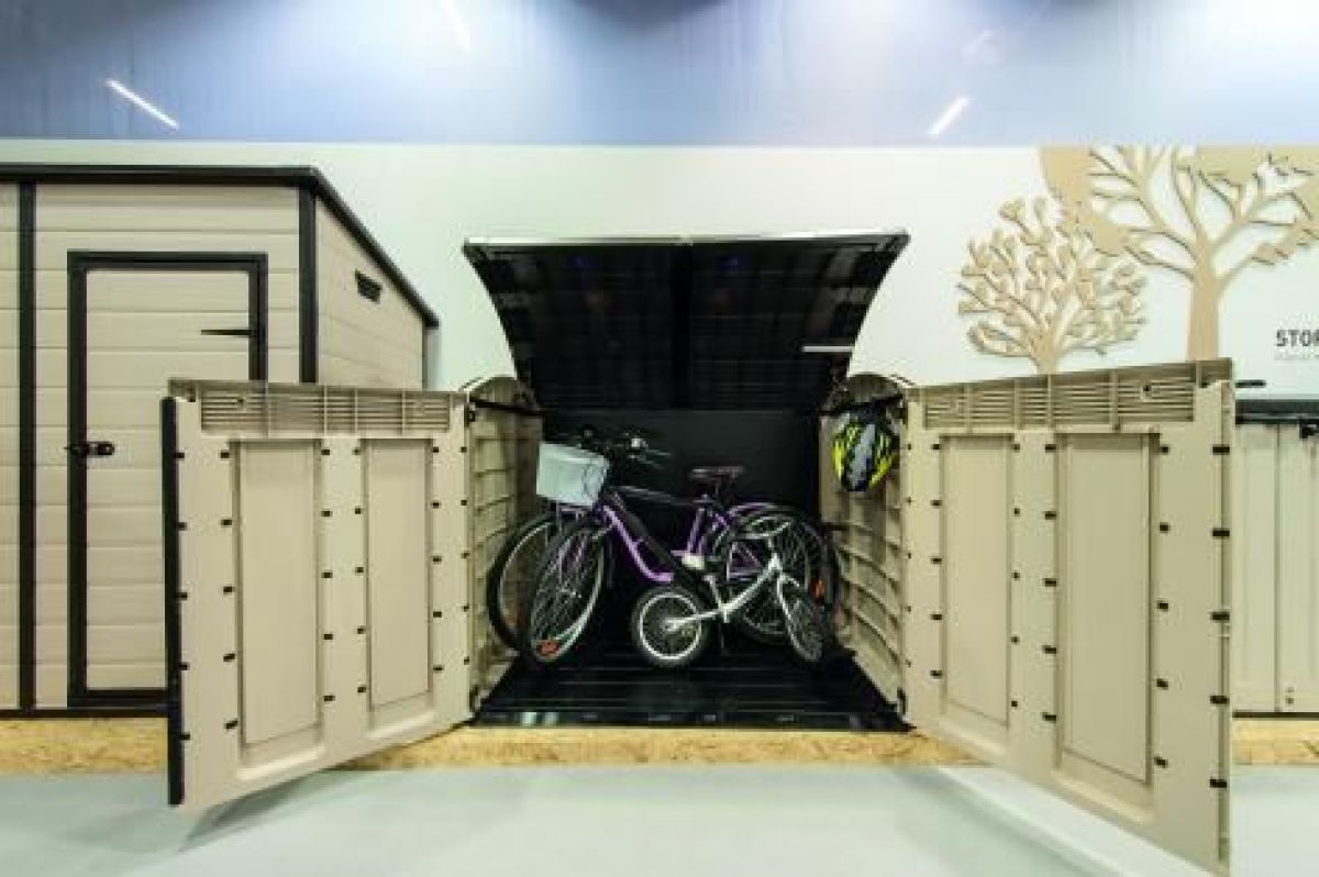 Вместительный шкаф STORE-IT-OUT ULTRA является отличным решением для хранения всех видов оборудования, садовых принадлежностей и инструментов, а также различных предметов домашнего обихода. Идеально поместит рекреационное оборудование, такое как велосипеды и садовая мебель и т.д. Откидная крышка и двустворчатые двери обеспечивают легкий доступ к внутреннему пространству. Оптимальные размеры и горизонтальная конструкция шкафа позволят расположить его в наиболее предпочтительном местоположении окружающей среды. Изготовлен из высококачественных материалов, эффективно защищает хранящиеся в нем предметы от неблагоприятных погодных условий, грязи и влаги.