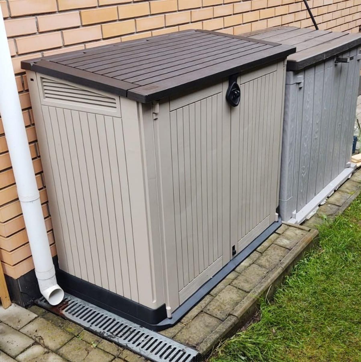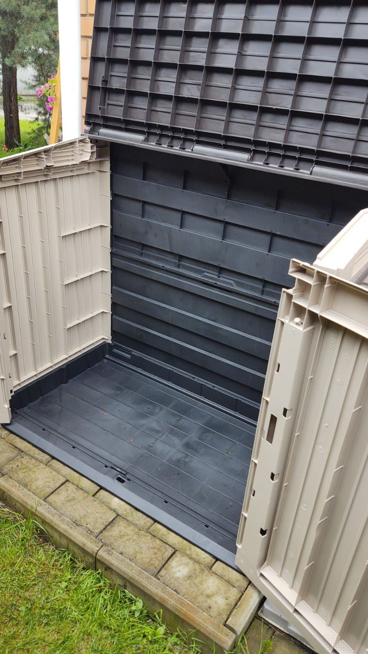 Пластиковый шкаф для уличного хранения - это стильное и экономичное решение от компании KETER. Верхняя откидывающаяся крышка, плюс две дверцы открывающиеся вперед позволяют хранить в уличном шкафу такие крупные предметы как велосипед, газонокосилка, систему полива или насос и многое другое. Кроме того, в шкафу при необходимости можно установить полку и хранить в уличном ящике более мелкие предметы.