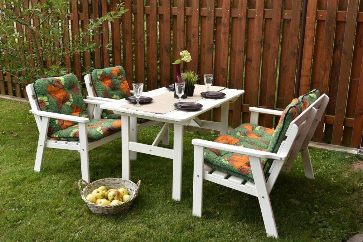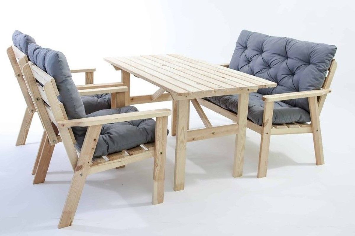 Гарнитур включает стол высотой 65 см со столешницей 120х70 см, 2-местн. софу Ньюпорт и два кресла Ньюпорт.