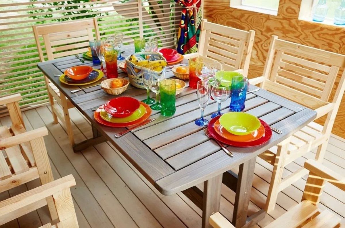 Стол — 120 х 70 х 75 с отверстием для зонта.