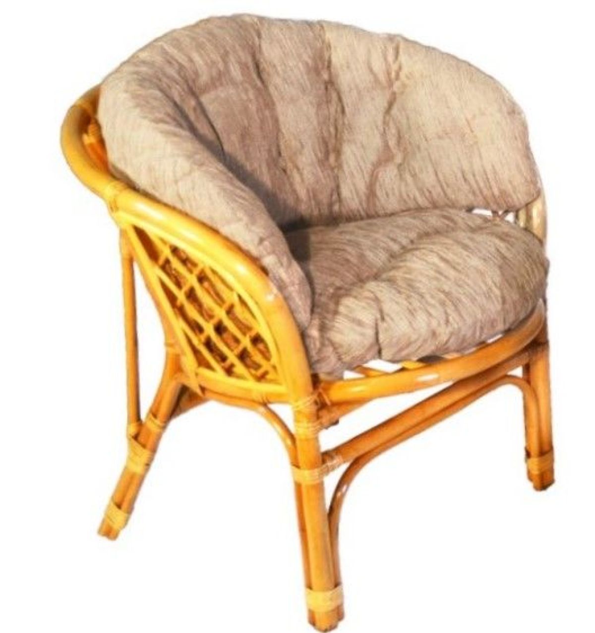 Комплект из натурального ротанга, состоящий из дивана, двух кресел и круглого столика со стеклом.