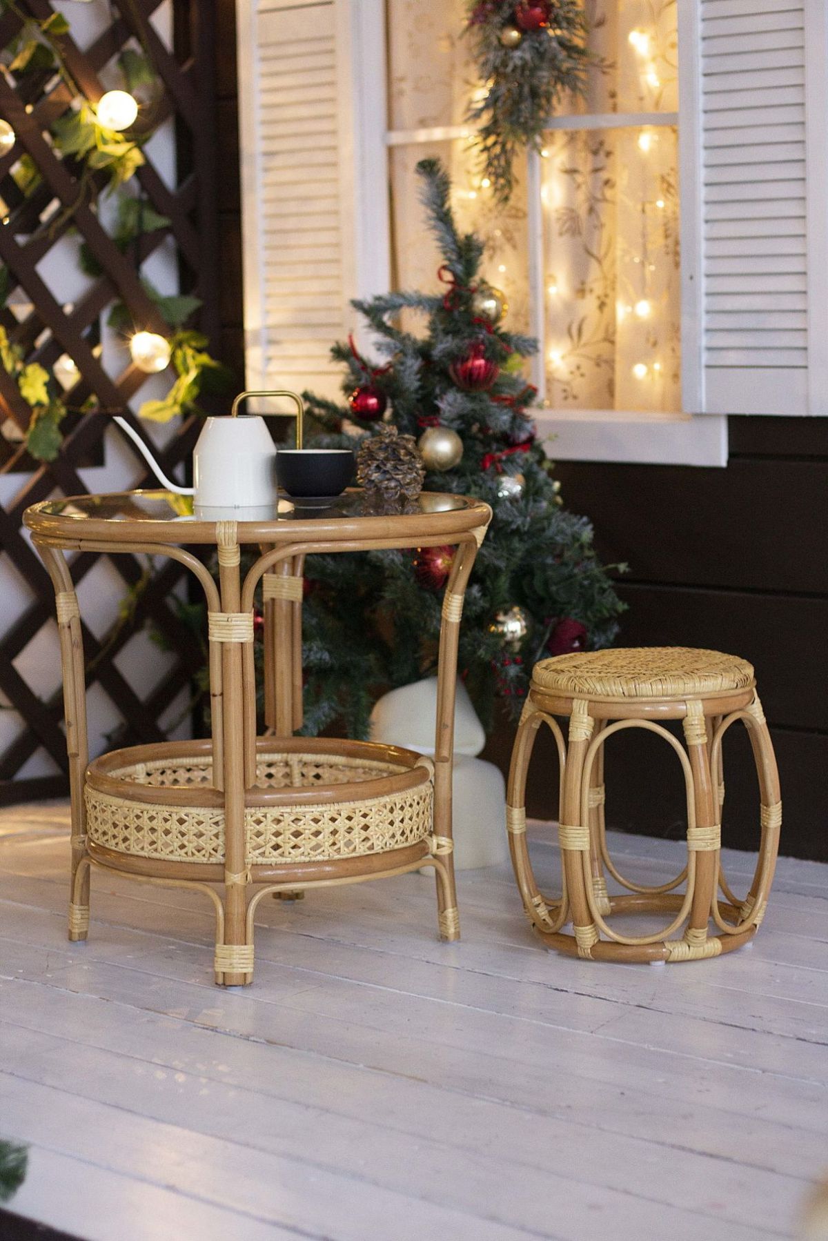 Комплект мебели Пеланги 02/15 включает в себя: 2 кресла и столик с красивым плетением снизу и полочкой, съемные подушки из материала улучшенного качества.