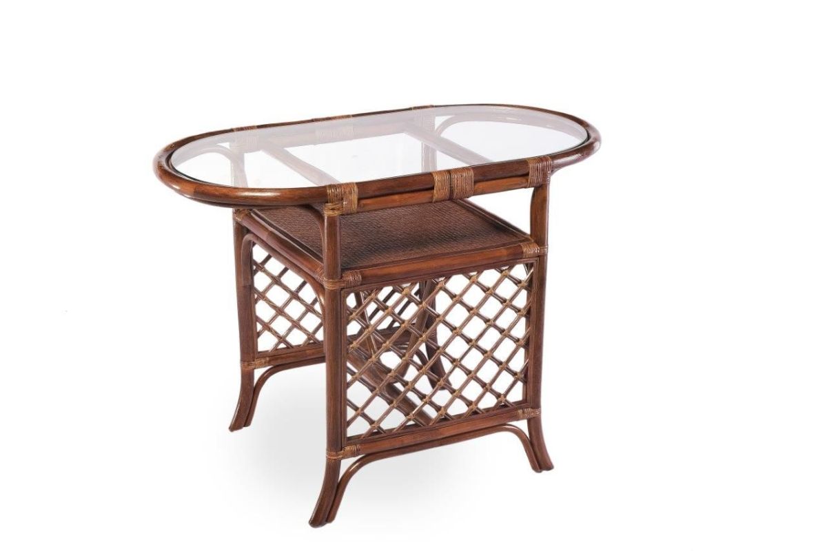 Комплект из ротанга: два кресла и узкий кофейный столик.