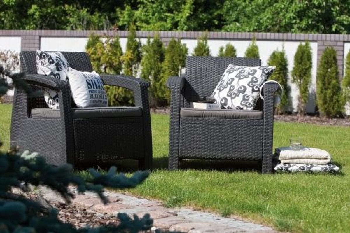 Комплект мебели под искусственный ротанг Корфу Балкон - лидер продаж группы KETER! Компактный, стильный и легкий садовый комплект мебели Corfu Balcony Set станет не только функциональным, но и эстетическим элементом садового участка. Небольшие размеры и приятная цена - все это садовая мебель Corfu Balcony Set