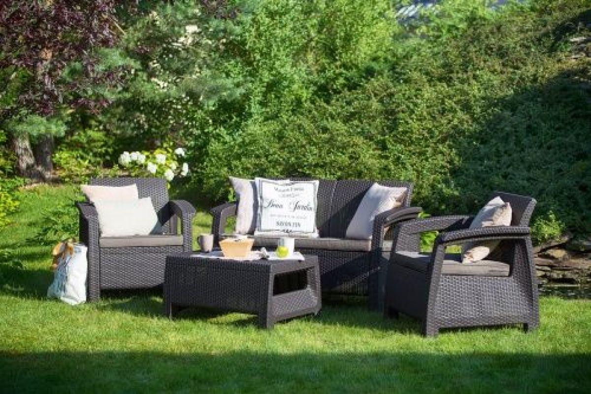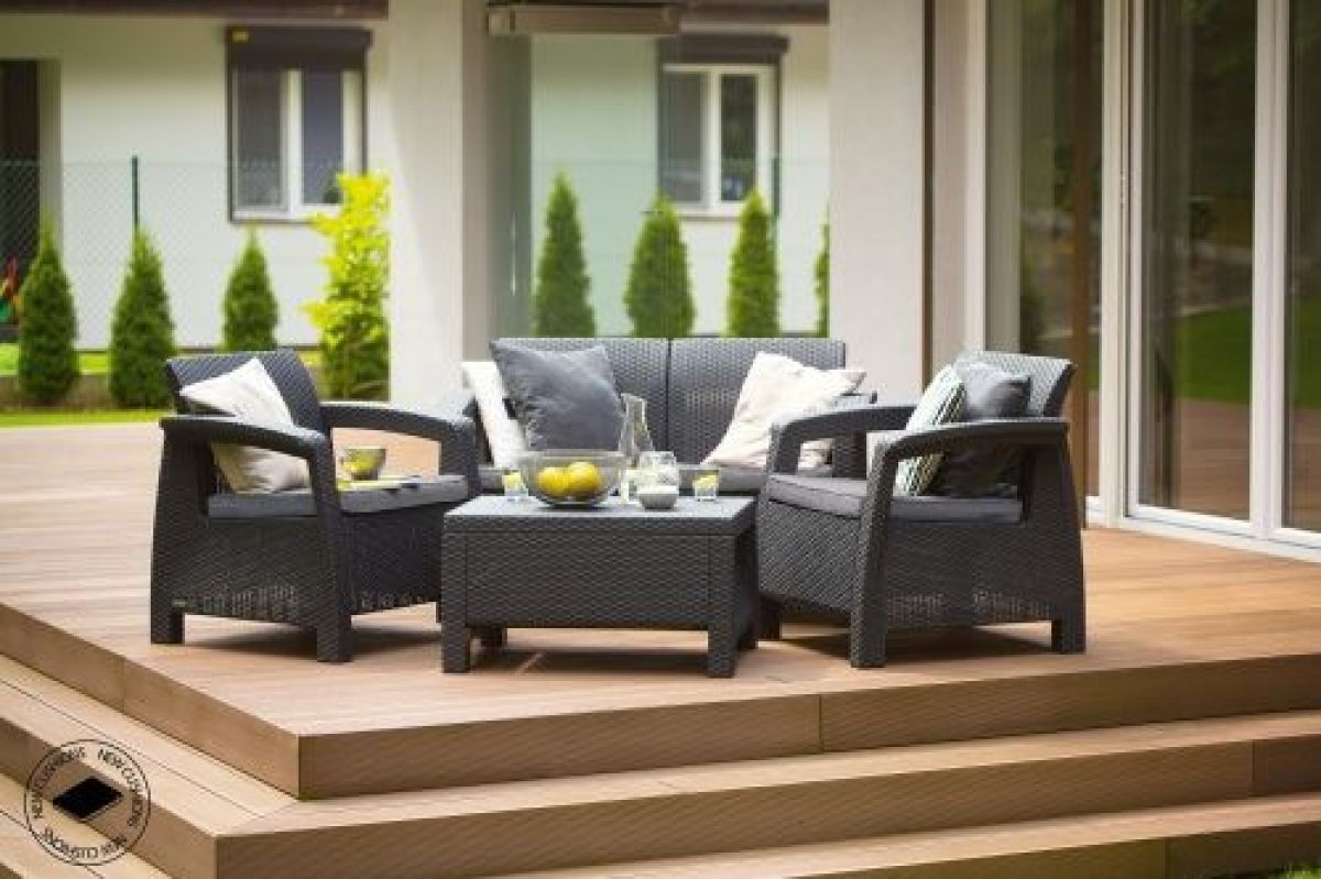 Комплект мебели Corfu Set – это самый дешевый диванный комплект мебели из пластика под искусственный ротанг производства фирмы Keter Group, при этом он обладает отличным качеством и стильным дизайном.