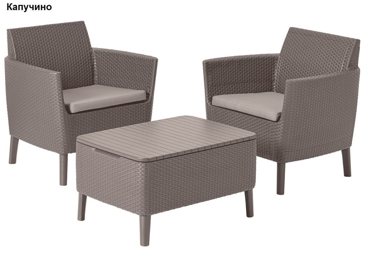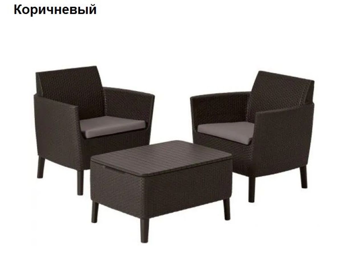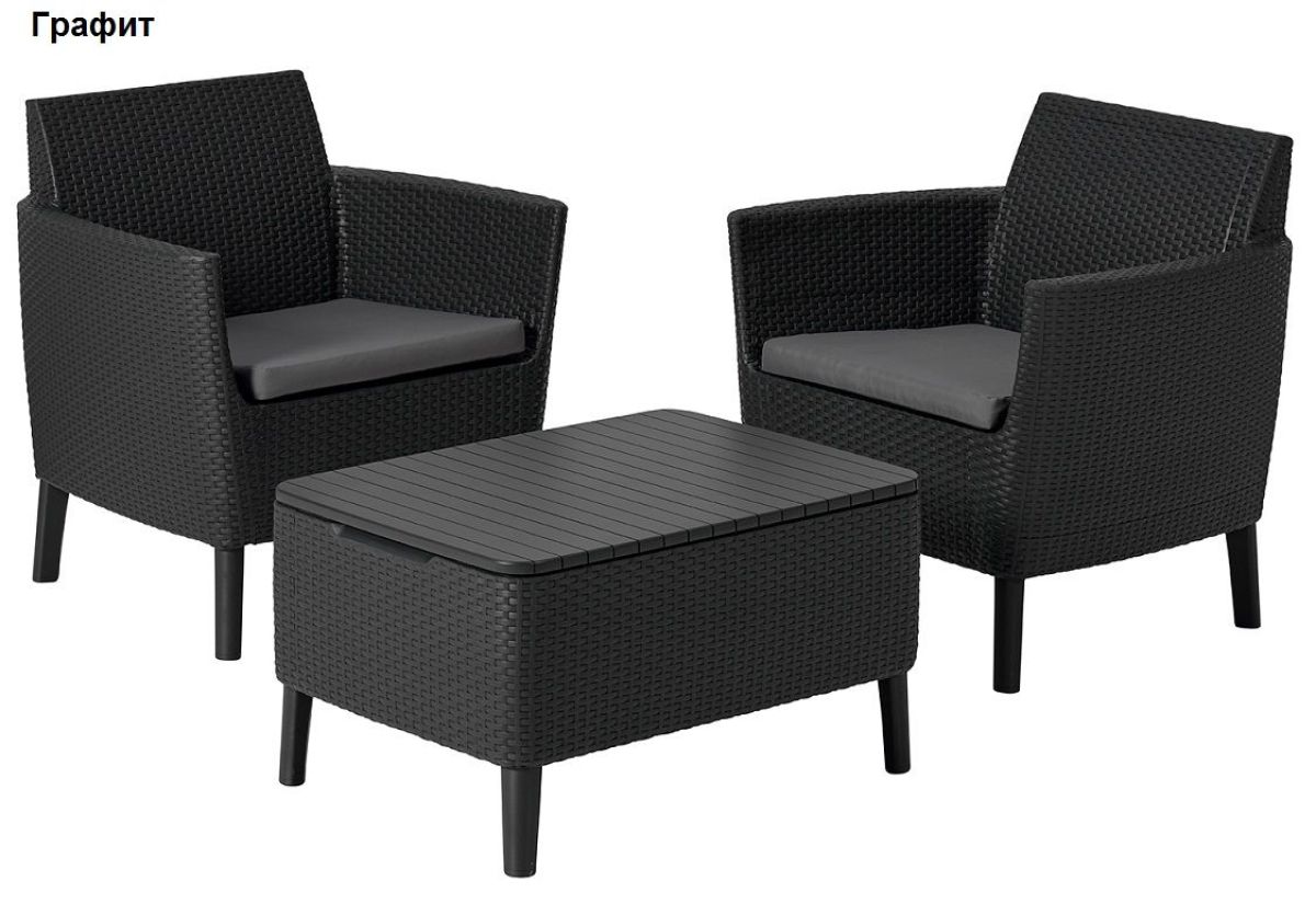 Элегантное дополнение к любому жилому пространству на открытом воздухе. Комплект Салемо включает два стула и один стол для хранения, все они сделаны из прочного, всепогодного пластика, которая может похвастаться стильной плетеной текстурой и гладкой фактурной столешницей. Кресла оснащены мягкими подушками, которые помогут вам расслабиться стильно и с полным комфортом. Набор идеально подходит для компактных помещений, легкий и простой в сборке.