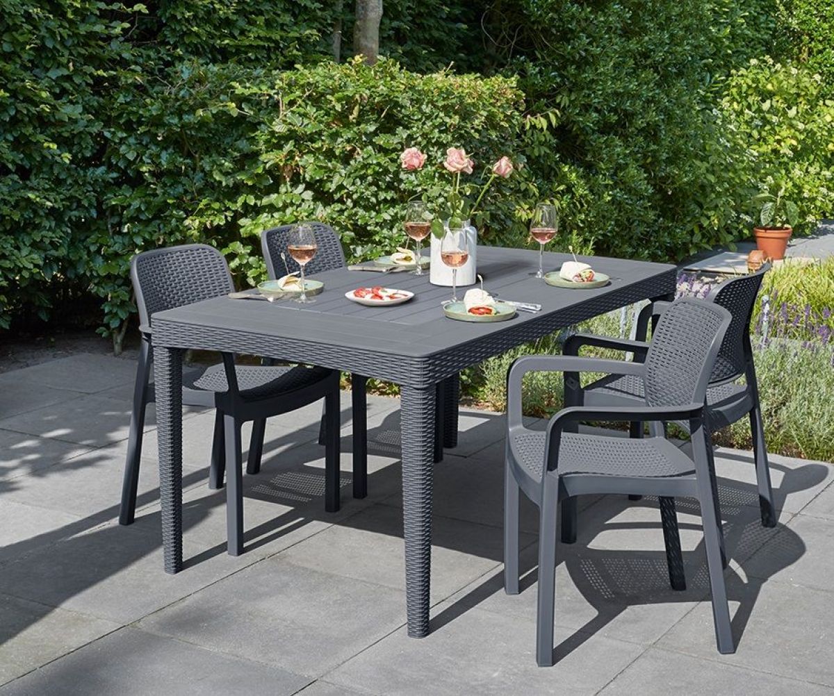 Samanna - это сочетание прочной конструкции и классической элегантности. Удобная, имеющая соответствующую форму спинка с фактурой ротангового плетения, а также устойчивые подлокотники обеспечивают оптимальный комфорт при сидении. Продукт характеризуется прочностью и стойкостью к повреждениям, а также к длительному воздействию атмосферных условий и УФ-лучей. Стул Samanna отлично сочетается с комплектами мебели KETER, представленными на нашем сайте.
