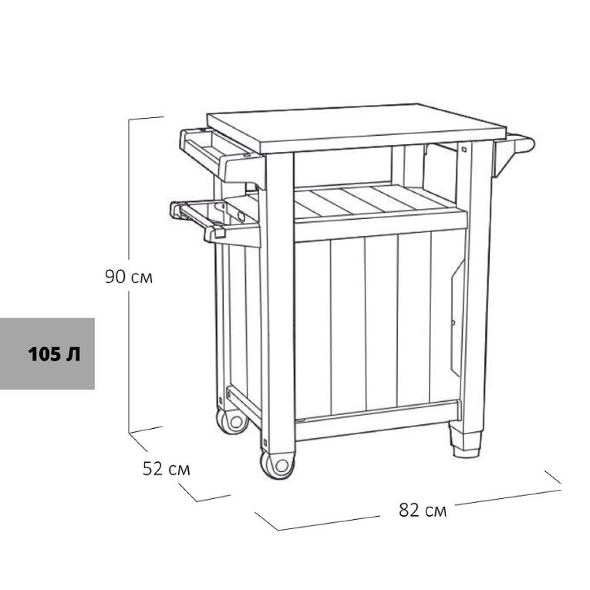 Функциональное и оригинальное решение в прекрасном стиле, такое как стол для гриля, украсит любой сад или террасу. Основным преимуществом продукта является его мультифункциональность. Необычная конструкция позволяет использовать его, как стол для приготовления блюд, и как шкафчик для хранения различных продуктов и ингредиентов. Столик оснащен столешницей из нержавеющей стали, удобной ручкой с дополнительными вешалками и колесиками, благодаря которым продукт удобно перемещать в разные места. Во вместительный шкафчик можно положить подручные аксессуары, необходимые для приготовления и подачи блюд на свежем воздухе.