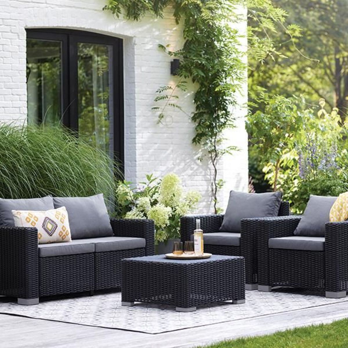 Столик Калифорния станет прекрасным дополнением Вашего сада или террасы. Его легкая округлая конструкция из плетенки добавляет элегантный и стильный штрих любому комплекту кресел и стульев. Легко превратите Ваш сад или террасу в гостиную мечты на свежем воздухе. Конструкция стола из пластика устойчива против погодных условий и защищена от ультрафиолетового излучения, что отлично облегчает уход. Достаточно протереть его влажной тряпочкой - и готово.