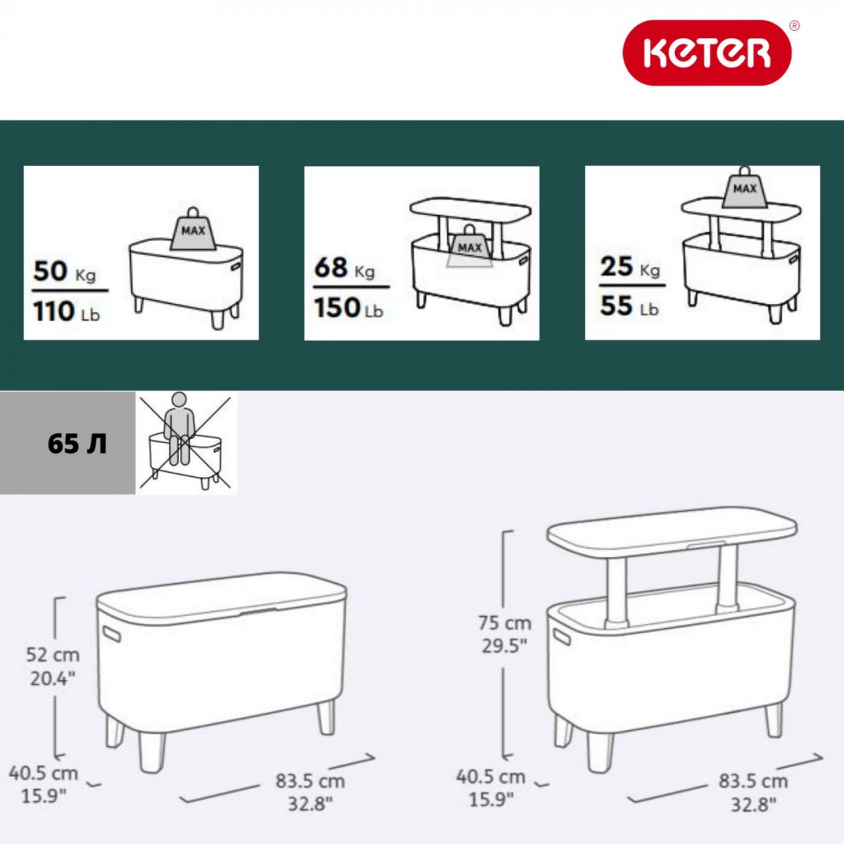 Очень популярный в Европе столик теперь и в России. Компактный столик, который может регулироваться по высоте, отлично подойдет для оформления зоны отдыха у бассейна. Плетение под ротанг сочетается с шезлонгами и мебелью Keter. Во внутреннюю емкость можно положить лед или налить холодной воды для поддержания температуры ваших напитков. При необходимости емкость можно использовать для любого другого хранения.