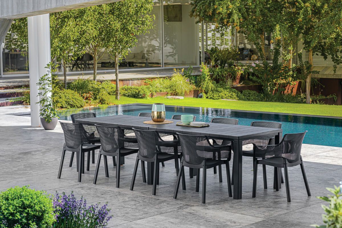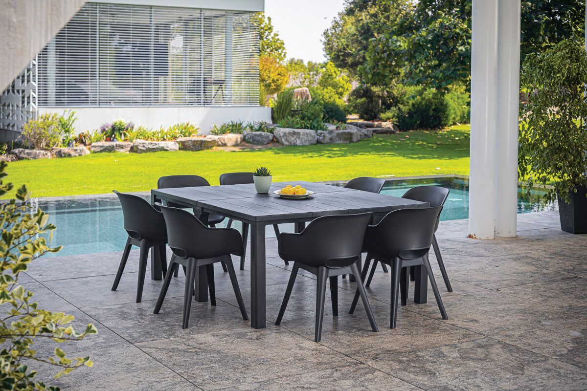 Раскладной стол Джули идеально подходит для особых случаев, поскольку может из небольшого столика на 6 персон превратится в большой прямоугольный или квадратный стол на 8-10 персон. Джули заполнит большие пространства, такие как сад или терраса, позволяя организовать семейную вечеринку или встречу в большом кругу друзей. Продукт отличается высокой прочностью и устойчивостью к воздействию погодных условий и УФ-излучения. Очень прост в сборке и поддержании чистоты.