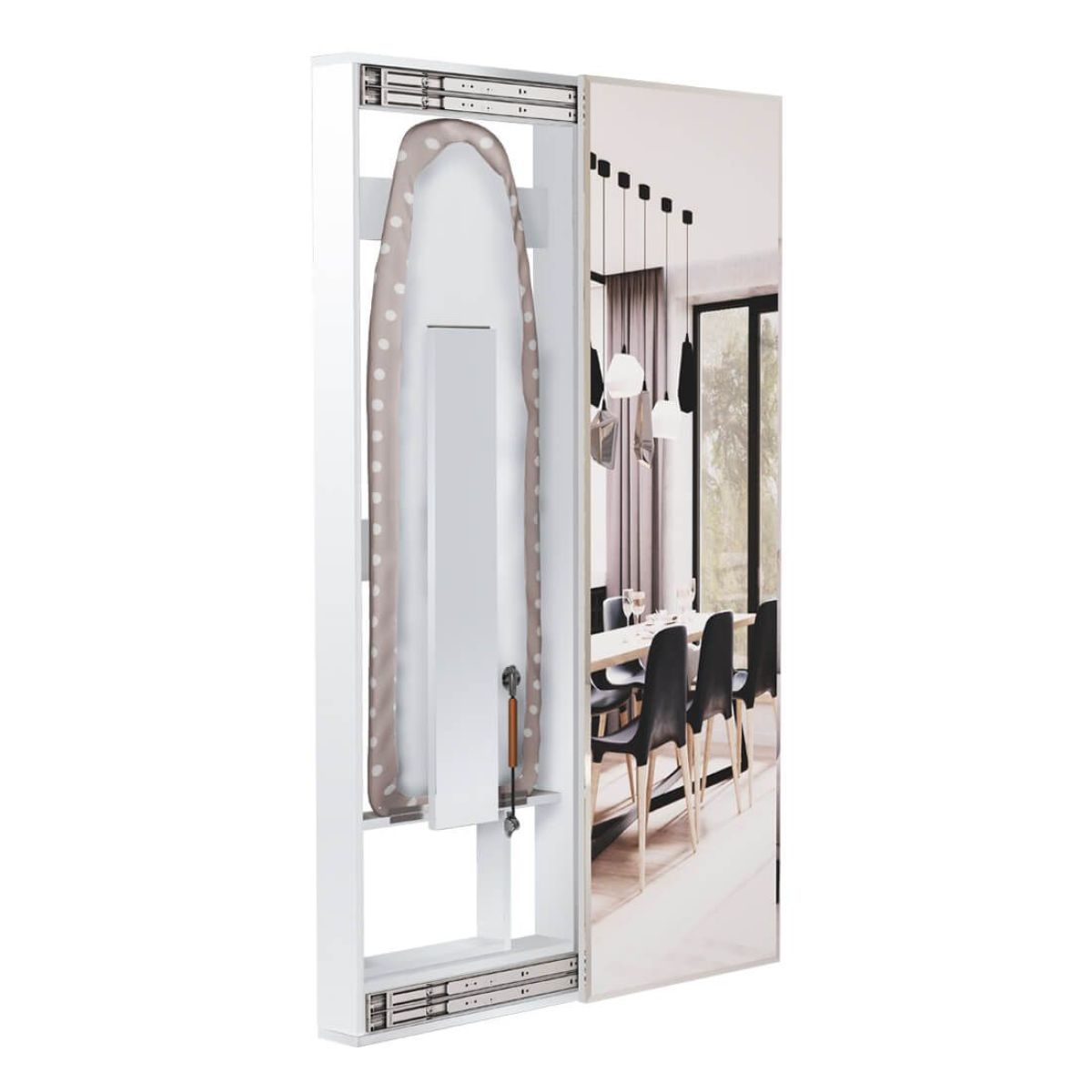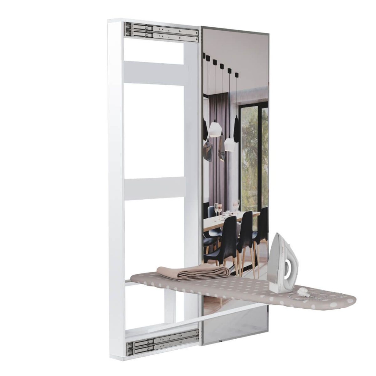 Размеры гладильной поверхности: 1124х350. Зеркало клеется на фабрике.