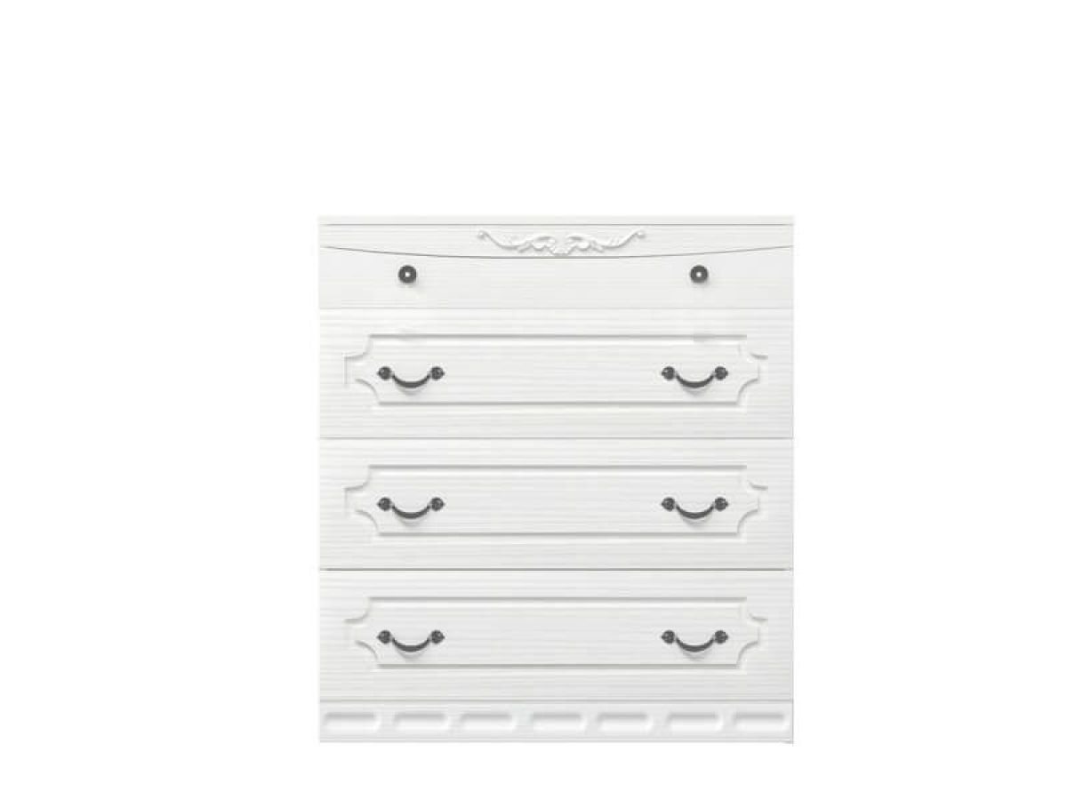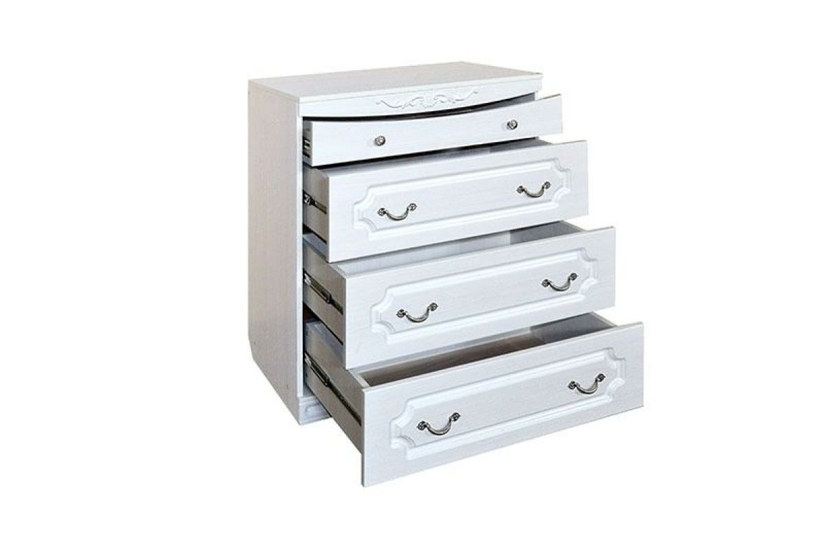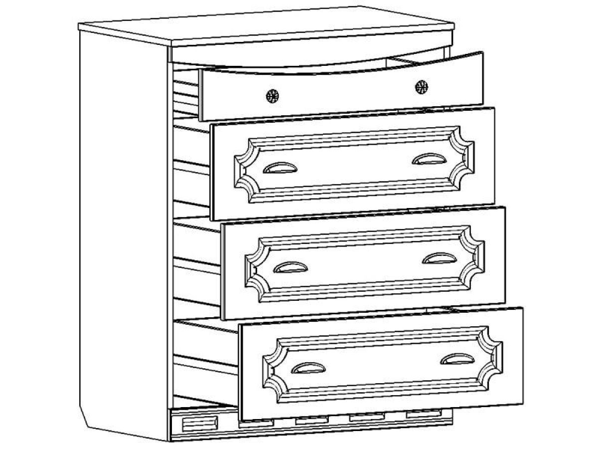 В корпусной мебели для спальни этой серии, комод «Мария-Луиза 990» имеет четыре выдвижных ящика на шариковых направляющих.