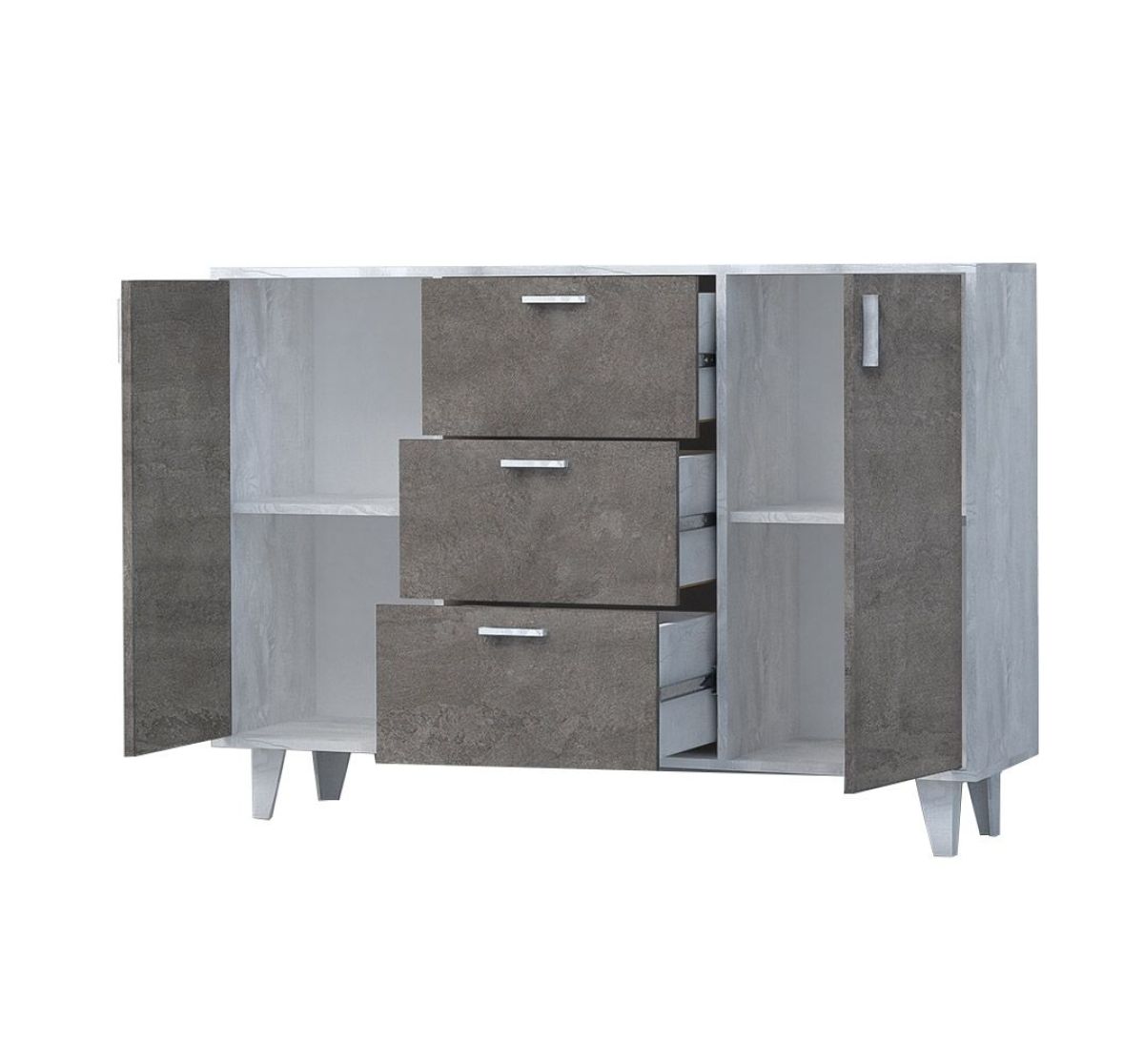 Эго К-2 Комод с 3мя ящ, 2 дв (бетон светлый/камень темный) на ножках