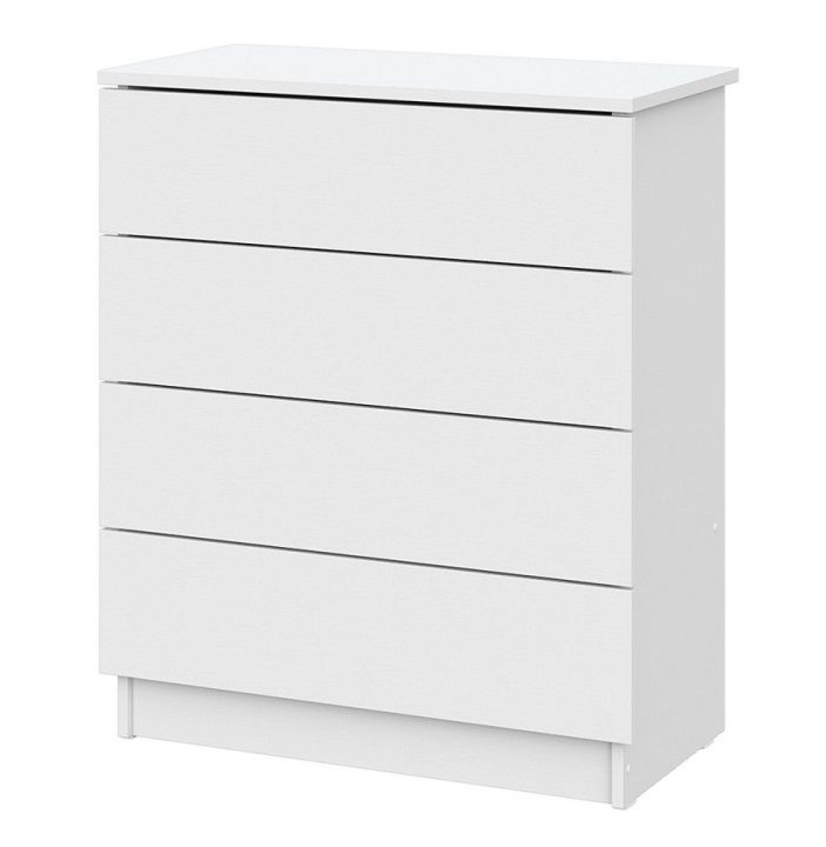 Комод предназначен для хранения вещей, белья или одежды, и для этого у него есть четыре вместительных выдвижных ящика, расположенных один над другим.