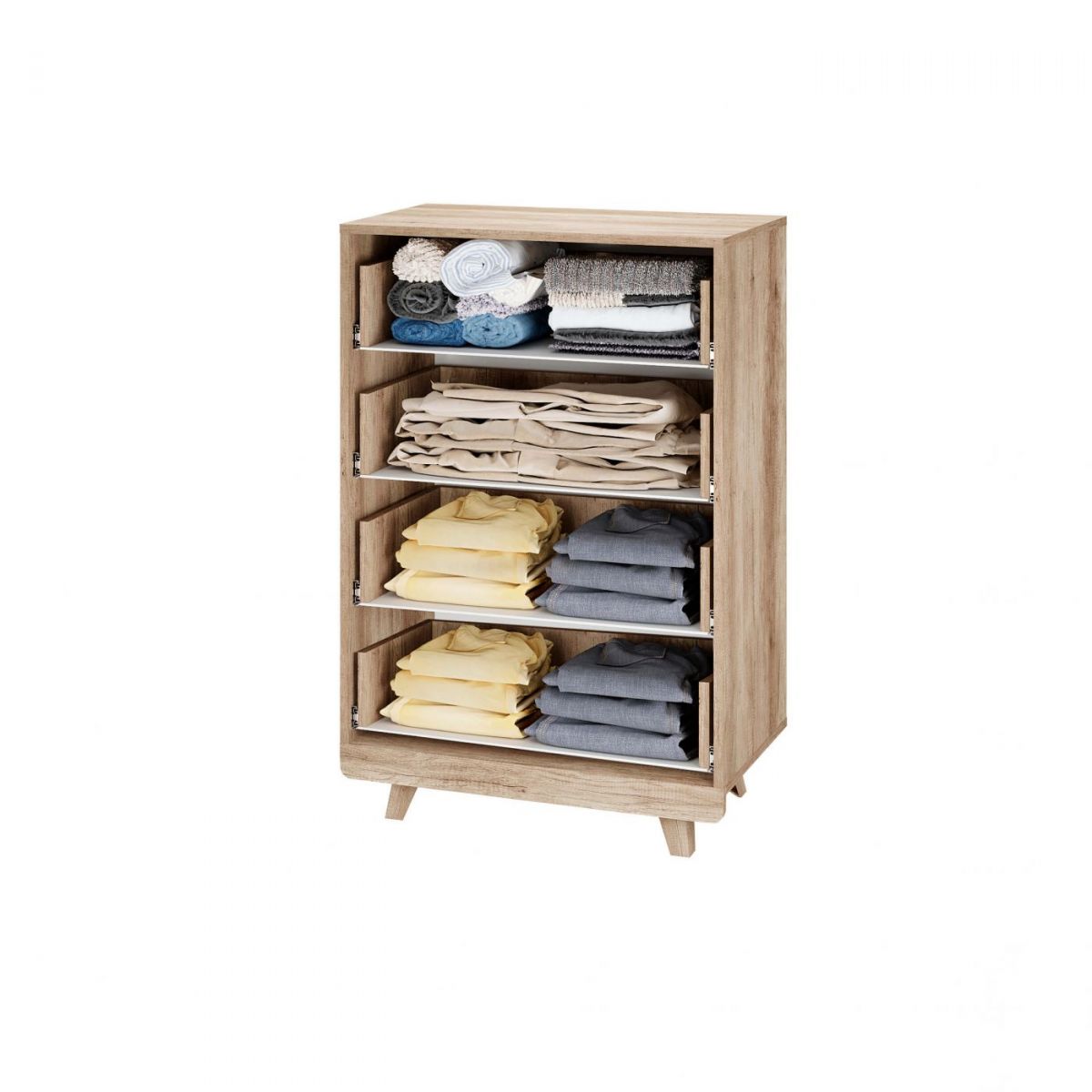 Особый шарм комодам «Мегаполис» придают трендовые цветовые решения фасадов, которые идеально вписываются практически в любой стиль. Оригинальная фрезеровка и эксклюзивная фотопечать выглядит очень эффектно и эксклюзивно. Пыли и грязи на таких поверхностях совершенно не видно, а это огромный плюс для домохозяек! Комод (КМ-02) состоит из четырёх выдвижных ящиков на шариковых направляющих для хранения одежды, пастельного белья и других хозяйственных аксессуаров. Цветовая палитра фасадов комодов впервые разбавлена фасадами с качественной фотопечатью.