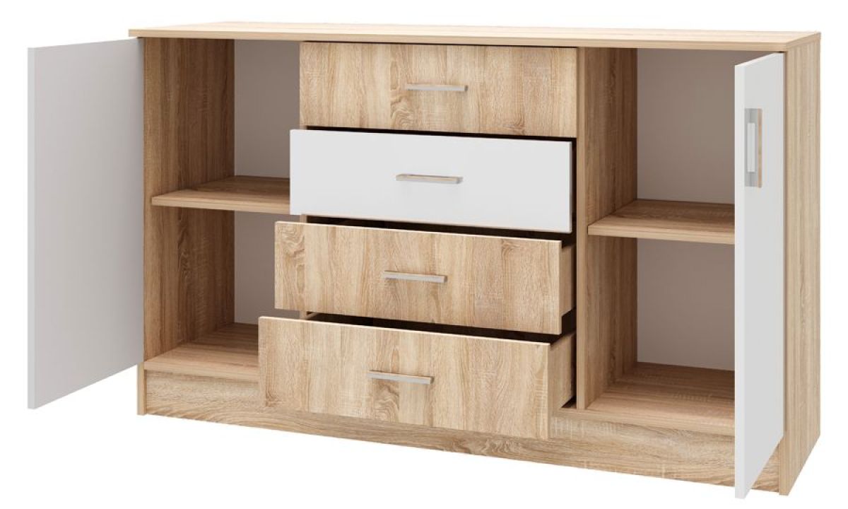 Комод двухстворчатый для хранения белья с 4-мя выдвижными ящиками на роликовых направляющих