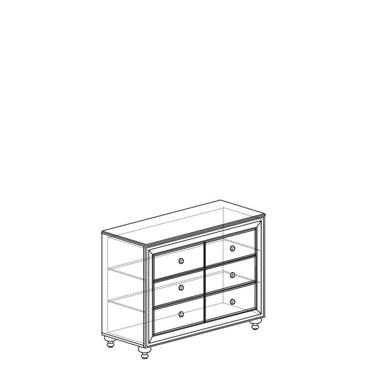 • Дополнительно: комод имеет 3 выдвижных ящика. Поперечное сечение ящиков (визуальное разделение на 6) выполнено фрезеровкой