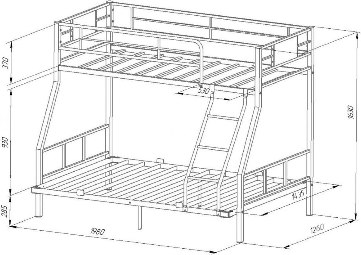 Спальное место: верхнее 900*1900 / нижнее 1400*1900 мм