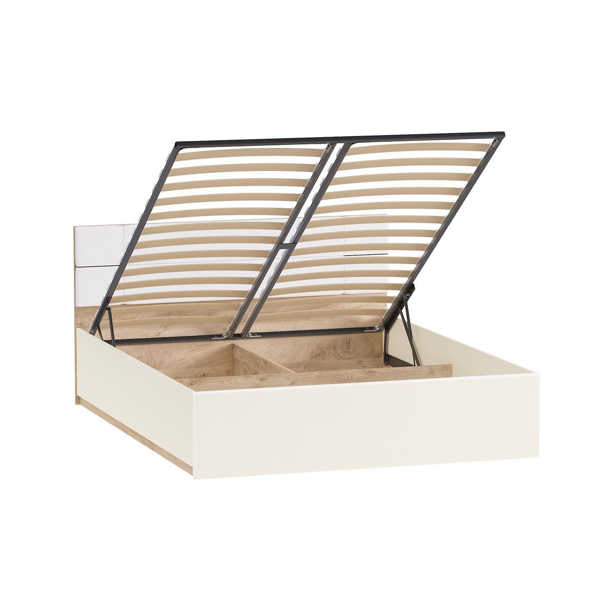 Под спальным местом кровати с мягким изголовьем скрывается вместительная система хранения, доступ в которую осуществляются с помощью подъёмного механизма ортопедического основания.