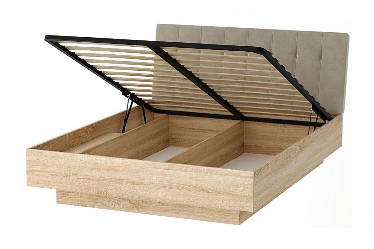 СОНАТА КРС-1600 Кровать с ПМ (дуб сонома/велюр бежевый)