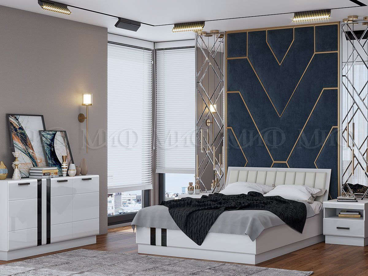 Кровать 1600х2000 Магнолия с основанием и ПМ (Белый глянец/белый)