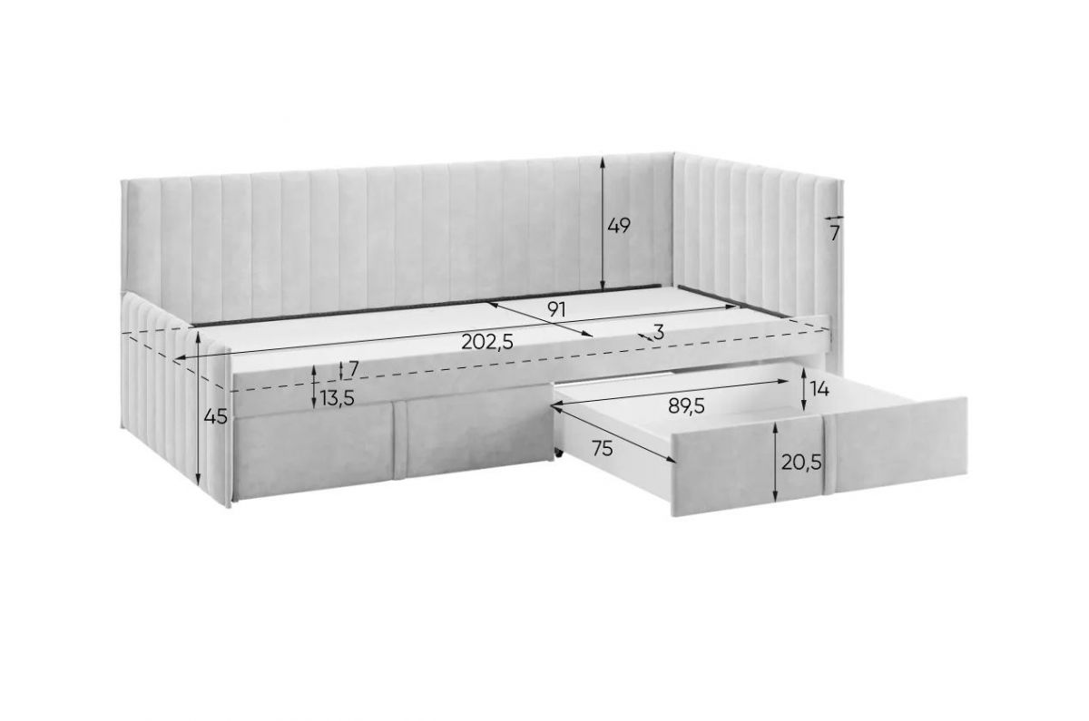 Состоит из: мягкого каркаса, выкатные ящики.