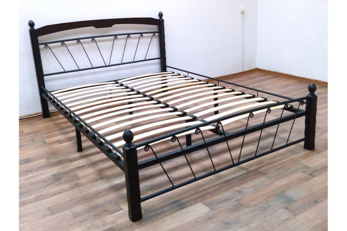 Кровать "Муза 1" КМД10 Черная (1600*2000) (ножки-шоколад) с коваными изделиями