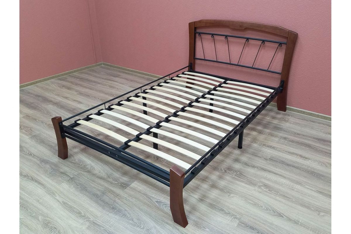 Кровать "Муза 4 Лайт" КМД9 Черная (1400*2000) (ножки-махагон) с коваными изделиями