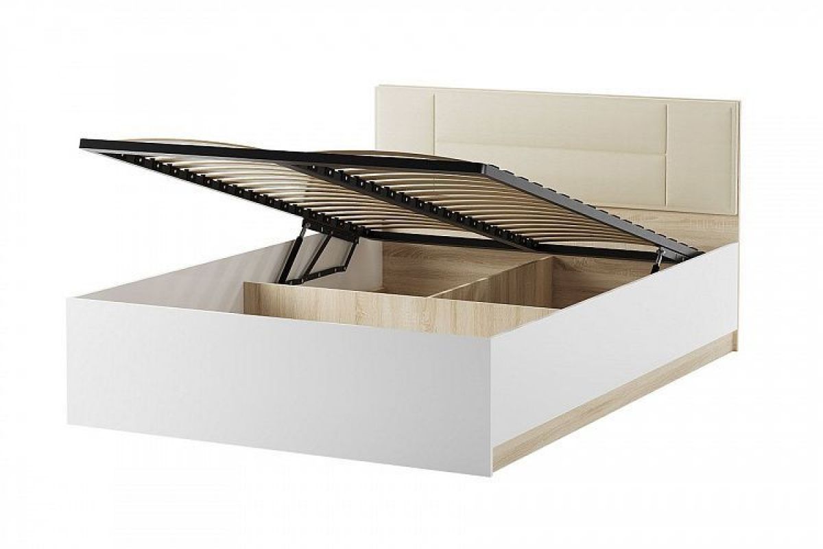 БЕАТРИС КР1400 с мягким изголовьем (дуб сонома/белый глянец)