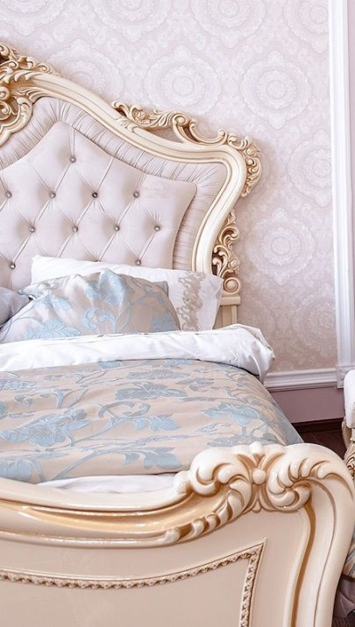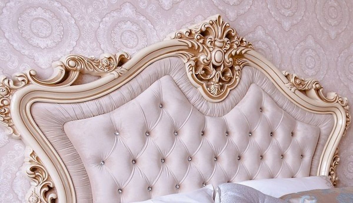 Мебель для спальни «Джоконда» не отличается прямыми линиями, здесь все очертания имеют криволинейные формы, преобладает архитектурный декор со сложными спиралями и витыми колоннами. Это дворцовый стиль, который использовали люди высшего класса в своих домах.