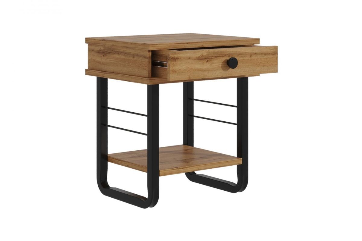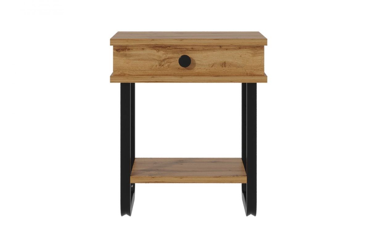 Тумба прикроватная "Грета" с коваными элементами, ЛДСП дуб вотан/металл черный