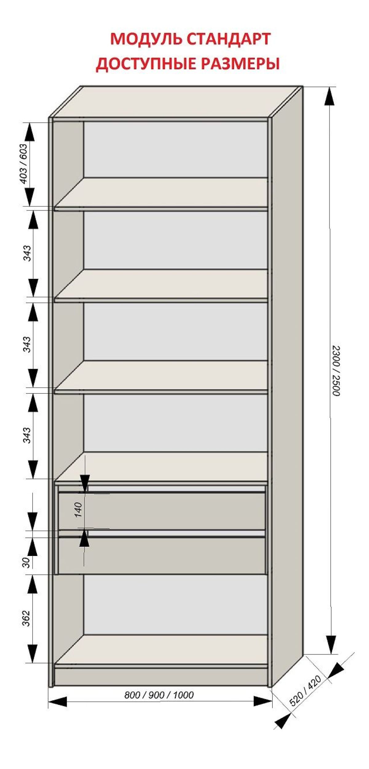 Возможна комплектация модуля с выдвижными ящиками направляющими скрытого монтажа soft-closing (плавное закрывание) несущей способностью до 20 кг.