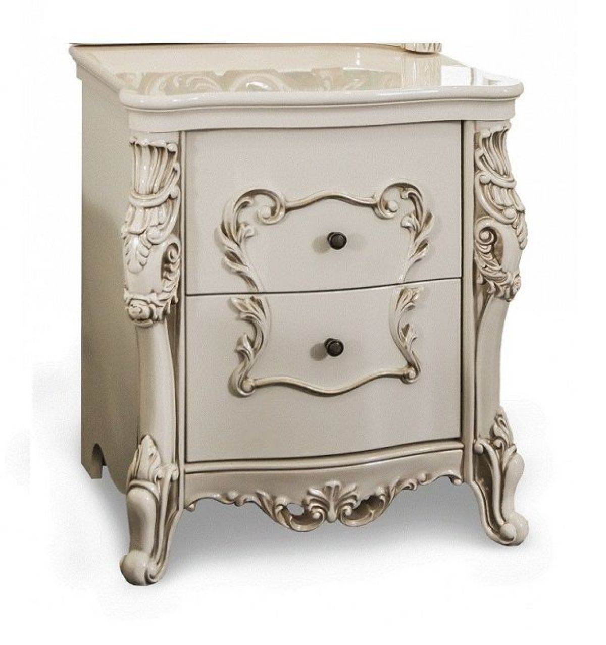 Мебель для спальни «Джоконда» не отличается прямыми линиями, здесь все очертания имеют криволинейные формы, преобладает архитектурный декор со сложными спиралями и витыми колоннами. Это дворцовый стиль, который использовали люди высшего класса в своих домах.