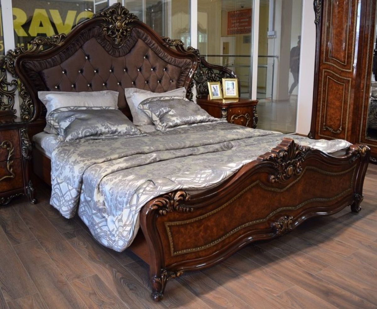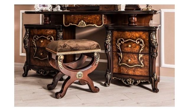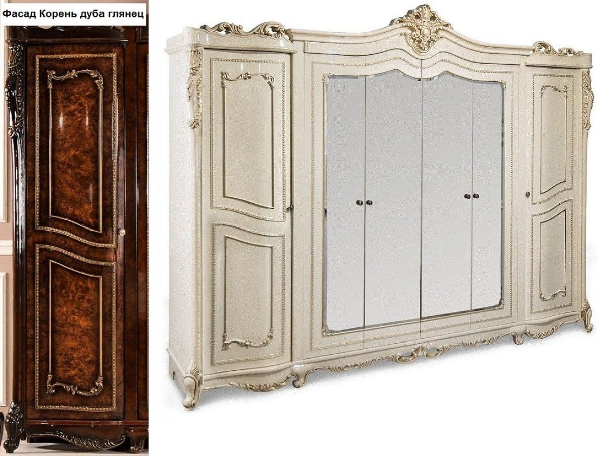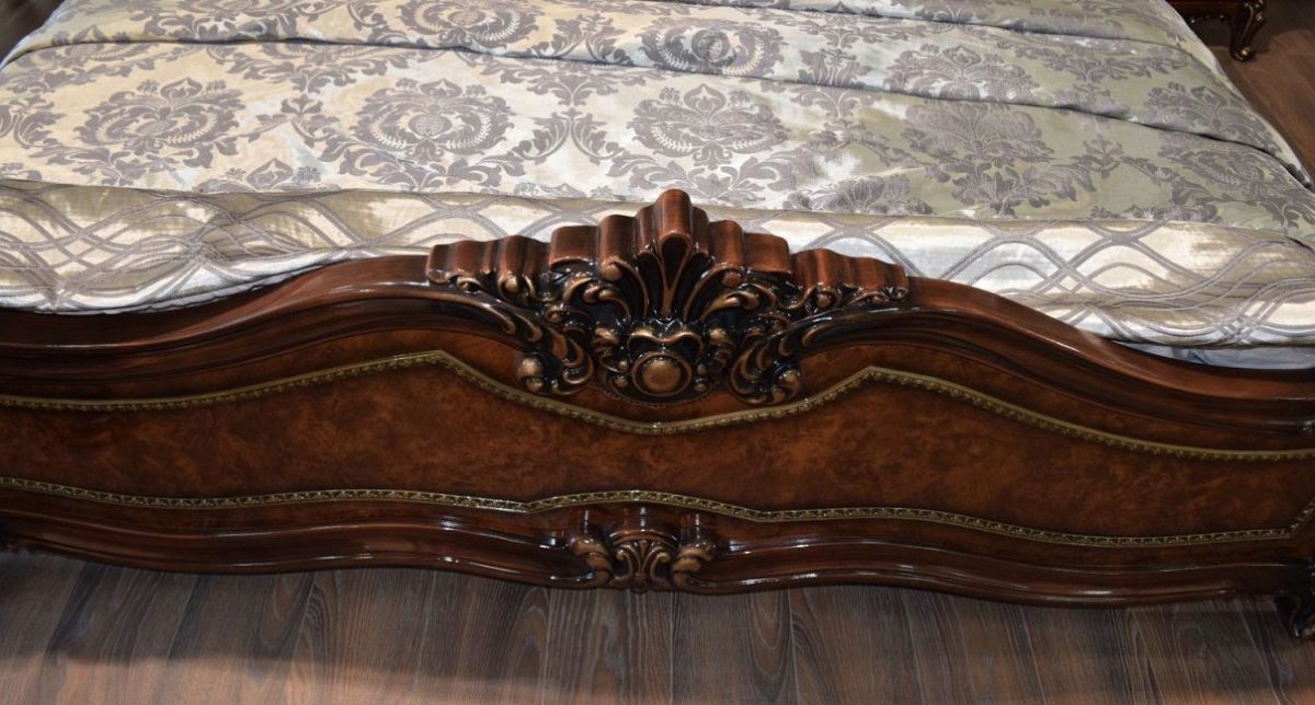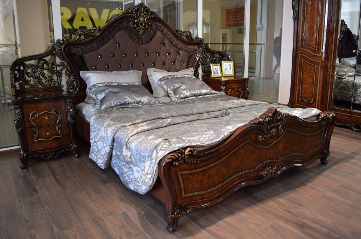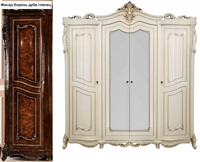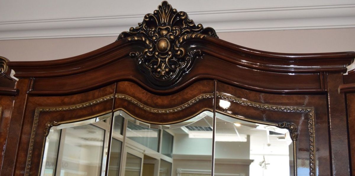 Мебель для спальни «Джоконда» не отличается прямыми линиями, здесь все очертания имеют криволинейные формы, преобладает архитектурный декор со сложными спиралями и витыми колоннами. Это дворцовый стиль, который использовали люди высшего класса в своих домах.