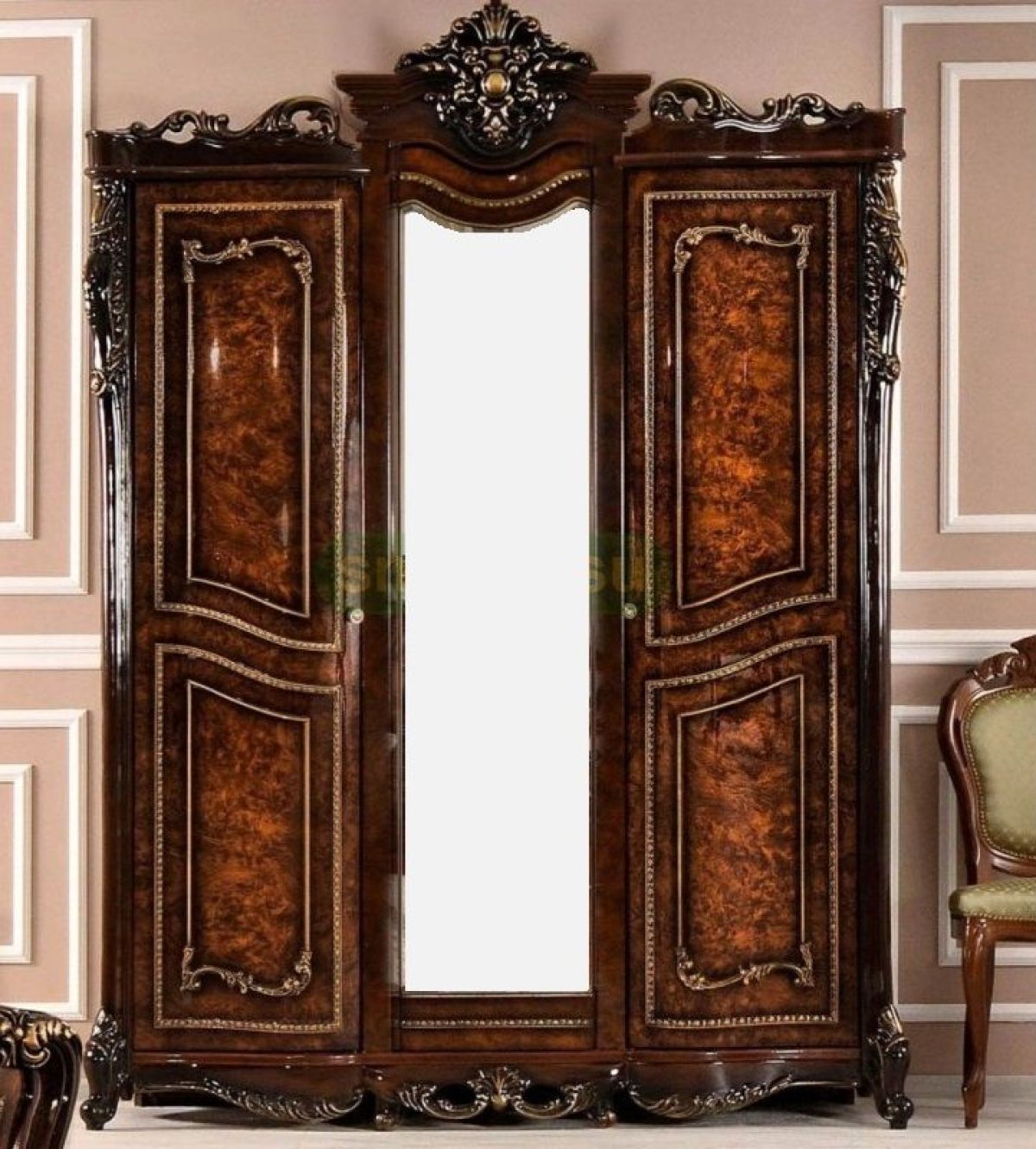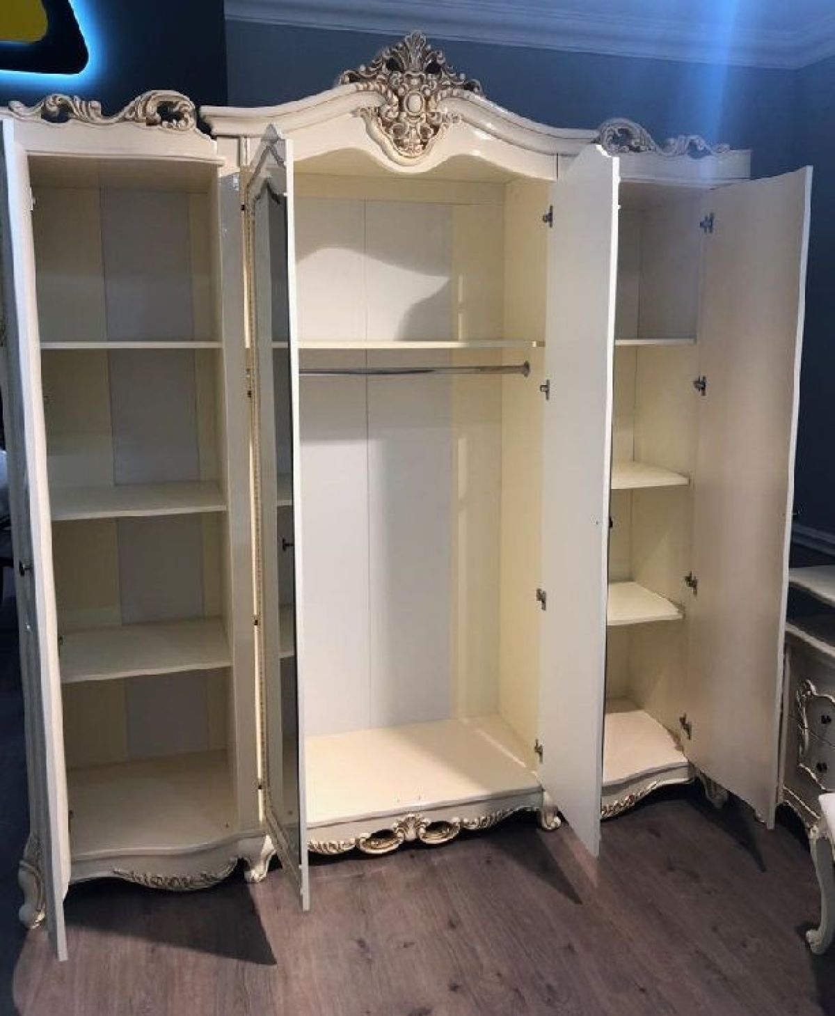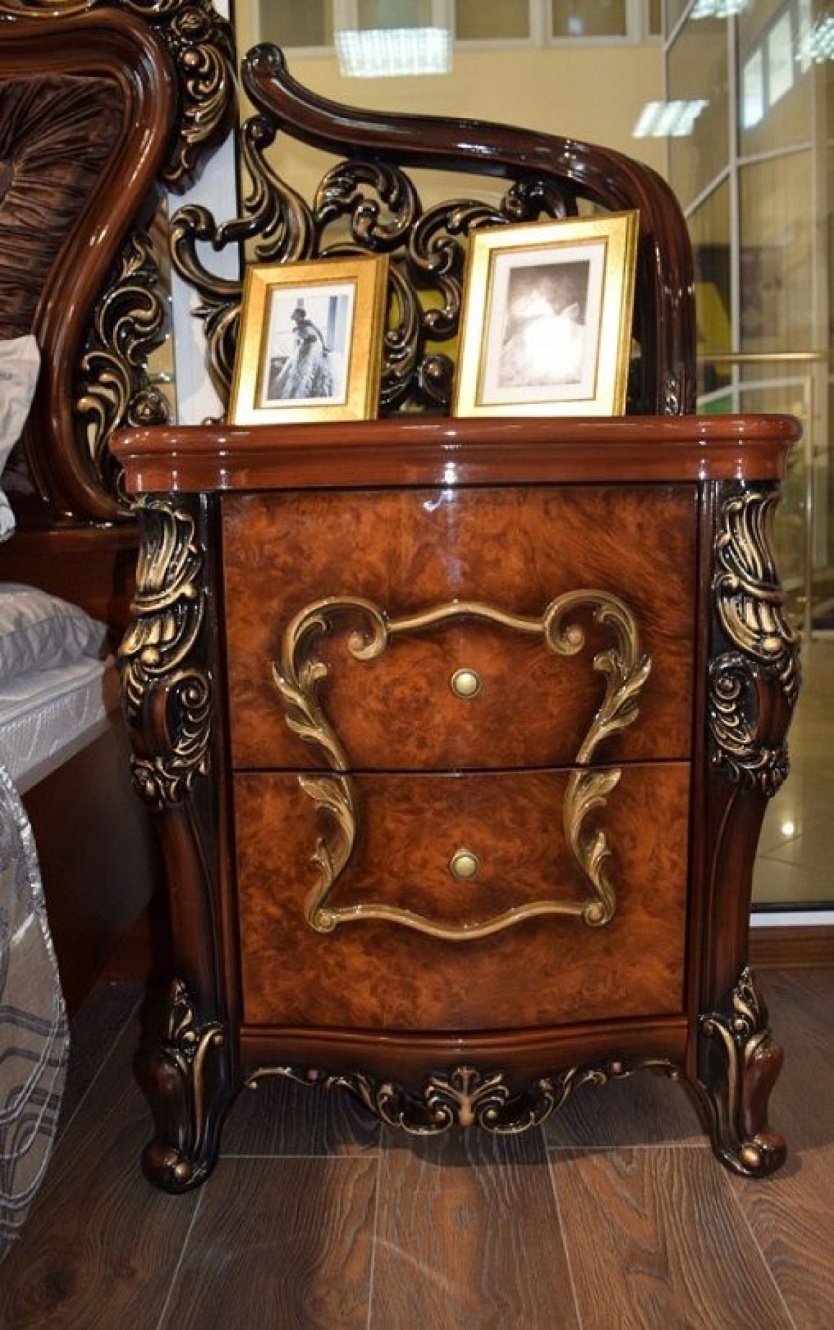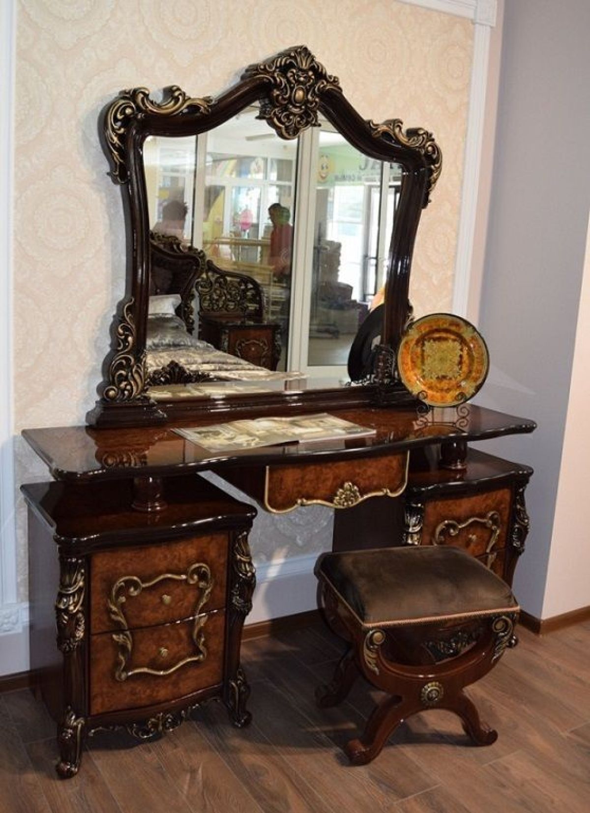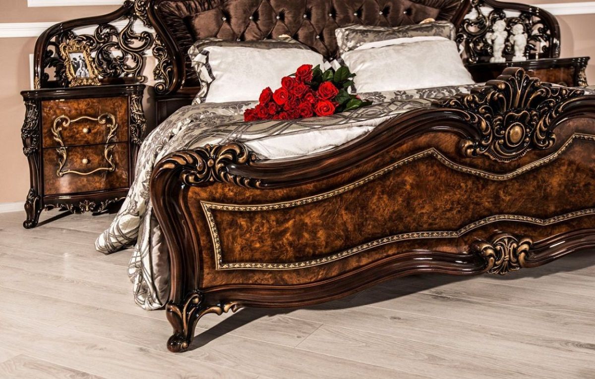Мебель для спальни «Джоконда» не отличается прямыми линиями, здесь все очертания имеют криволинейные формы, преобладает архитектурный декор со сложными спиралями и витыми колоннами. Это дворцовый стиль, который использовали люди высшего класса в своих домах.