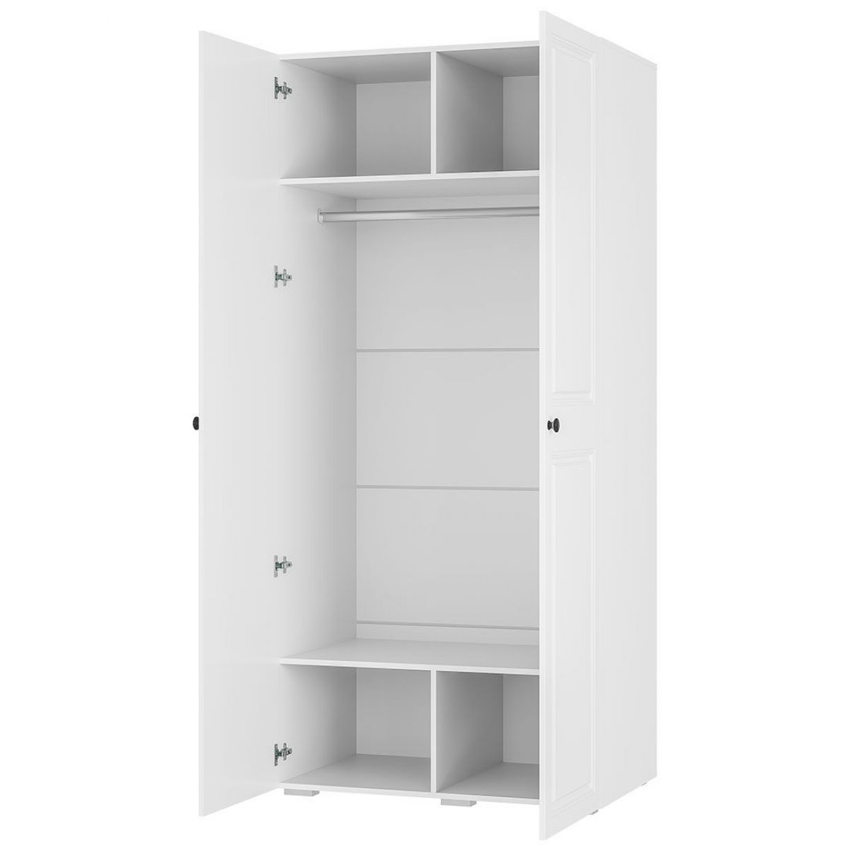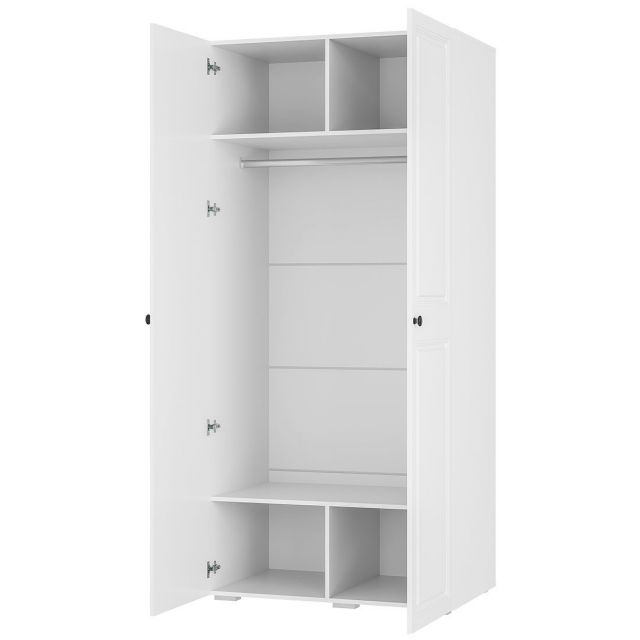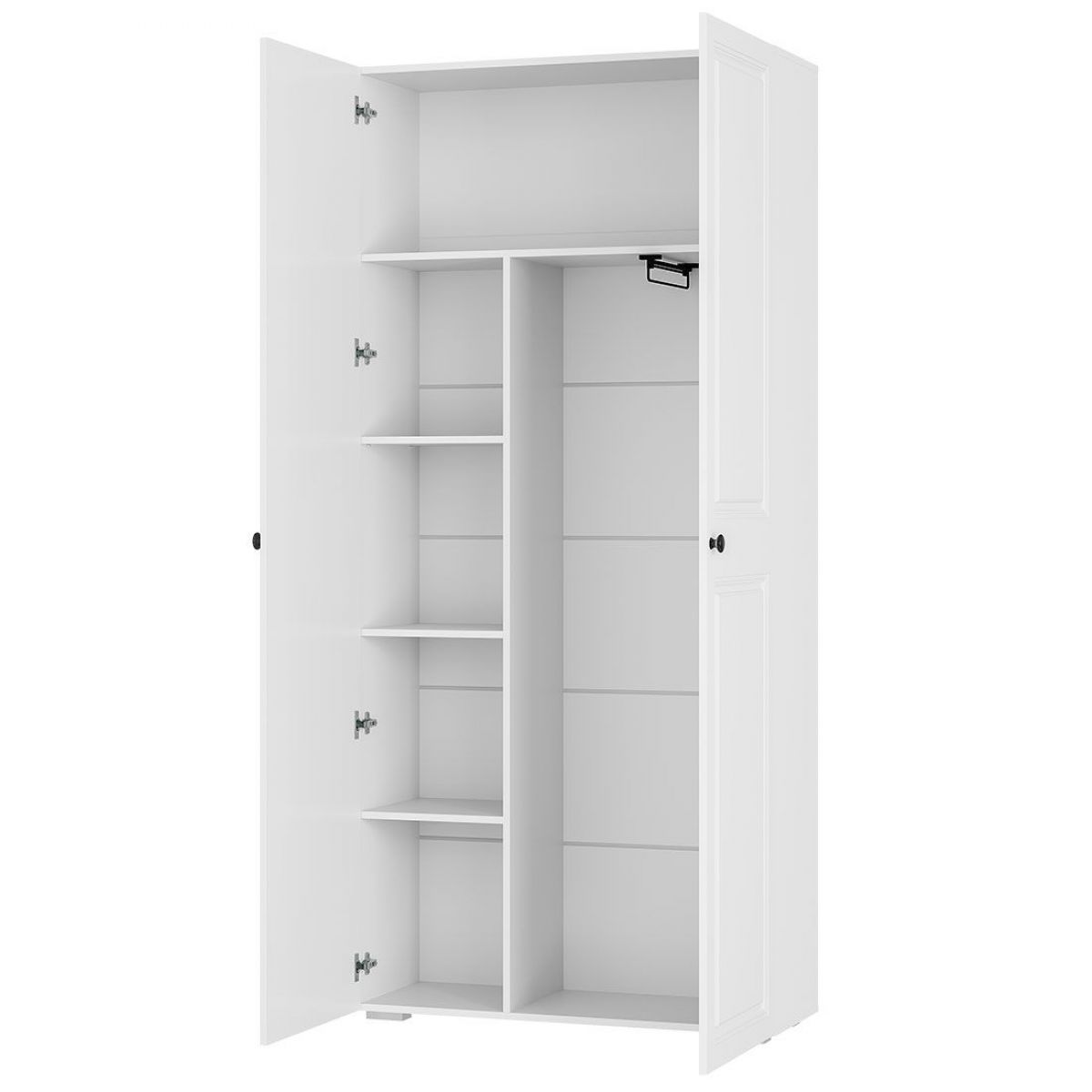 - Двухстворчатый шкаф «Софт» ШК-02 – вместительная модель, которая оснащена необходимыми зонами для хранения - просторным отделением с продольной хромированной штангой под вешалки для одежды и четырьмя полками для хранения различных вещей.