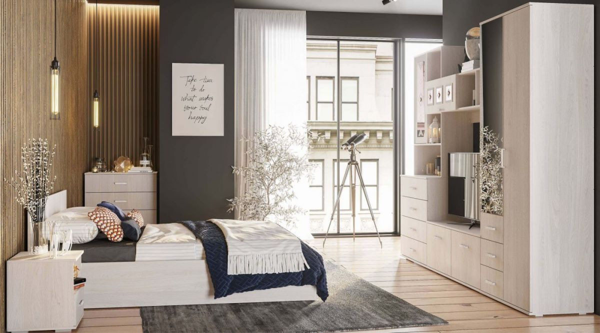 Модульная спальня «Белла» – это функциональная современная спальня с простыми геометрическими формами и уникальной древесной фактурой, выразительность которой придаст вашей обстановке свежести, лёгкости и элегантности.