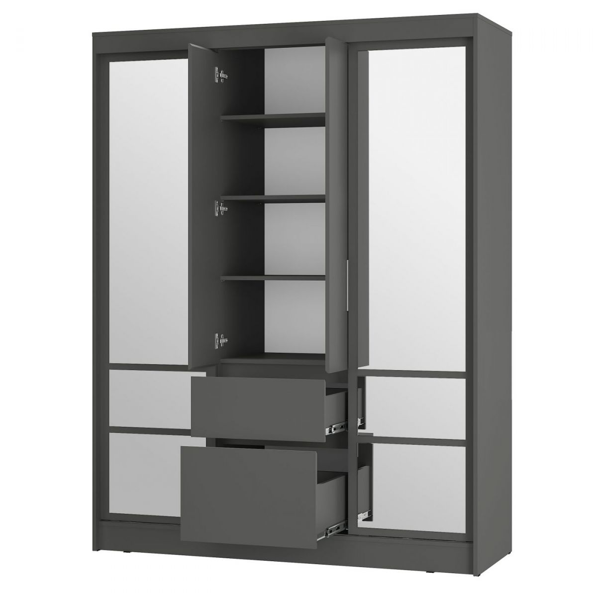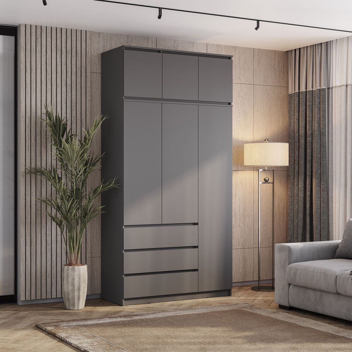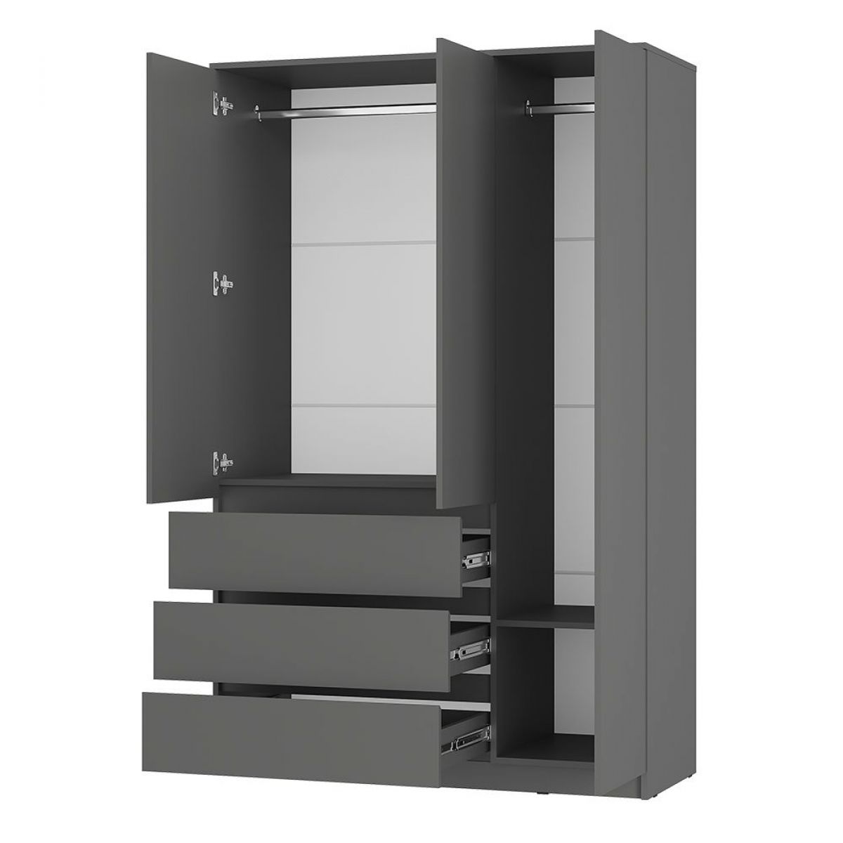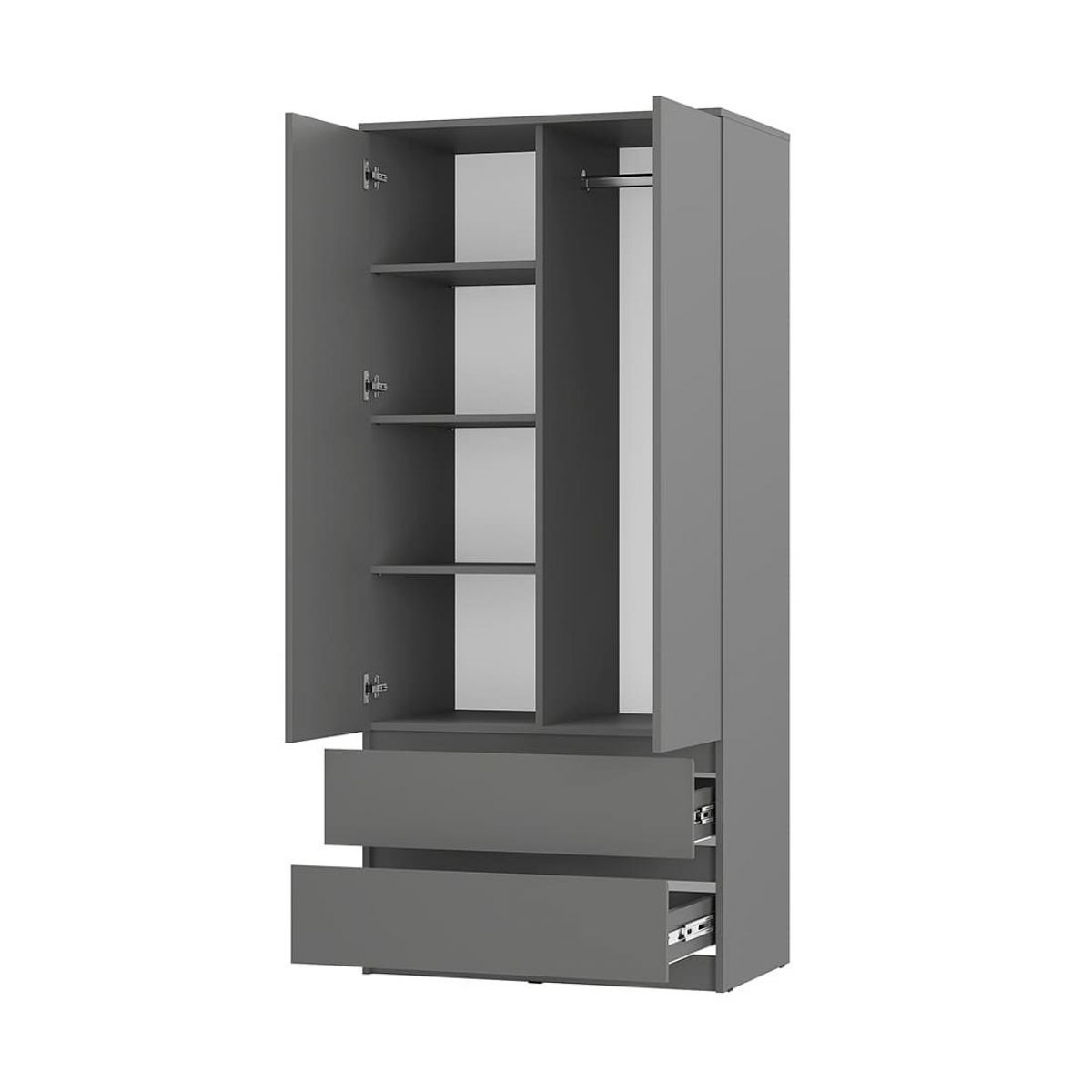 «Симпл» - это современная коллекция функциональной мебели. В ней собраны все необходимые предметы для интерьера спальни, гостиной и личной комнаты: шкафы, кровати, комоды, столы, тумбы. Также в состав композиции входят малые формы, которые станут изюминкой вашего дома. Коллекция полностью соответствует своему названию. Простой и стильный дизайн, отсутствие лицевой фурнитуры, распашные створки на отталкивателях (кроме тумбы ТБ-06 и тумбы ТБ-19) покорит ценителей минимализма. Мебель, выполненная в спокойных оттенках «белый» и «графит», идеально дополнит как классический, так и современный интерьер. Коллекция отличается практичностью и функциональностью. Полноценный набор мебели позволяет экспериментировать с пространством. Ещё одна особенность коллекции заключается в уникальной фрезеровке торцов фасадов - она выполнена под углом 45 градусов. Благодаря этой детали образовывается удобная интегрированная ручка, которая делает использование мебели более комфортным. Мебель этой коллекции оснащена надежными опорами из безопасного пластика – это позволит не только комфортно проводить влажную уборку, но и уберечь напольное покрытие от повреждений. Выдвижные элементы коллекции оснащены шариковыми направляющими.
