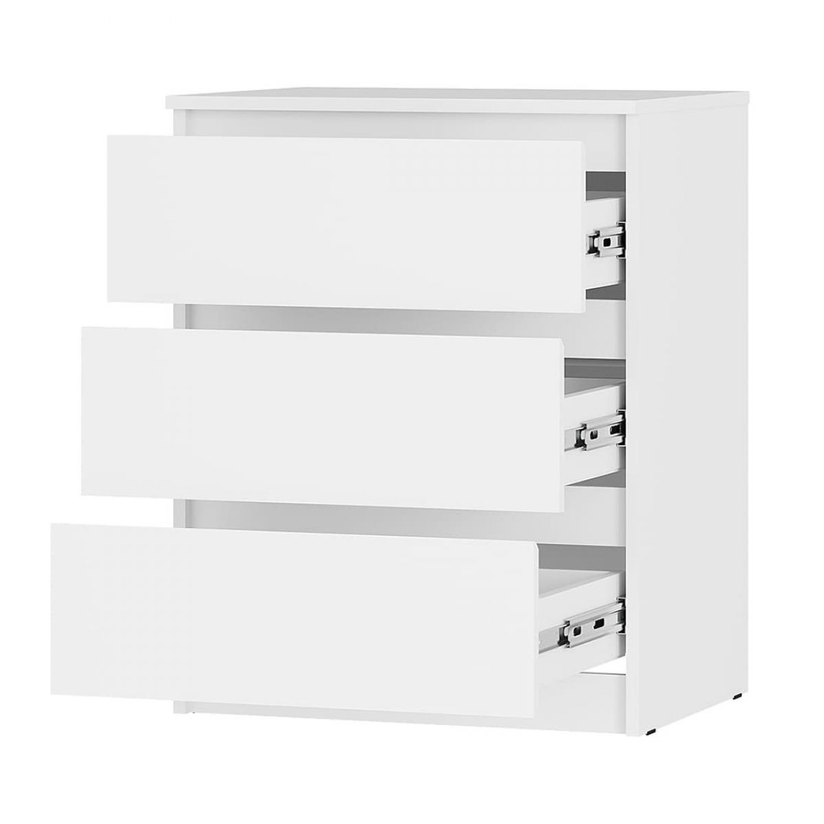 Комод «Симпл» (КМ-01) — компактный и вместительный комод с тремя выдвижными ящиками, которые открываются бесшумно за счет шариковых направляющих.