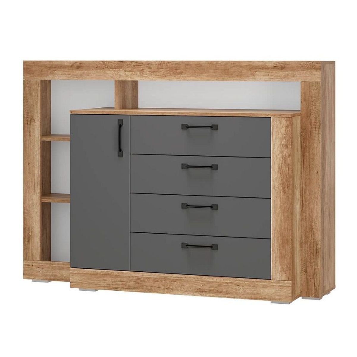 Коллекция "Прима" в модном декоре "дуб каньон/графит" удачно вписывается в городской индустриальный стиль и выглядит очень необычно и оригинально. Приятный корпус под дерево и матовые тёмные фасады - такое сочетание добавит комнате стиля.