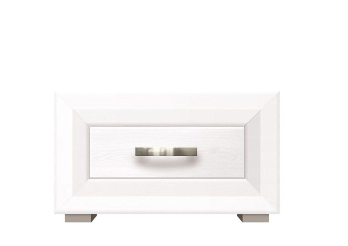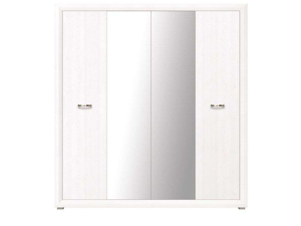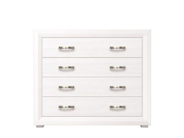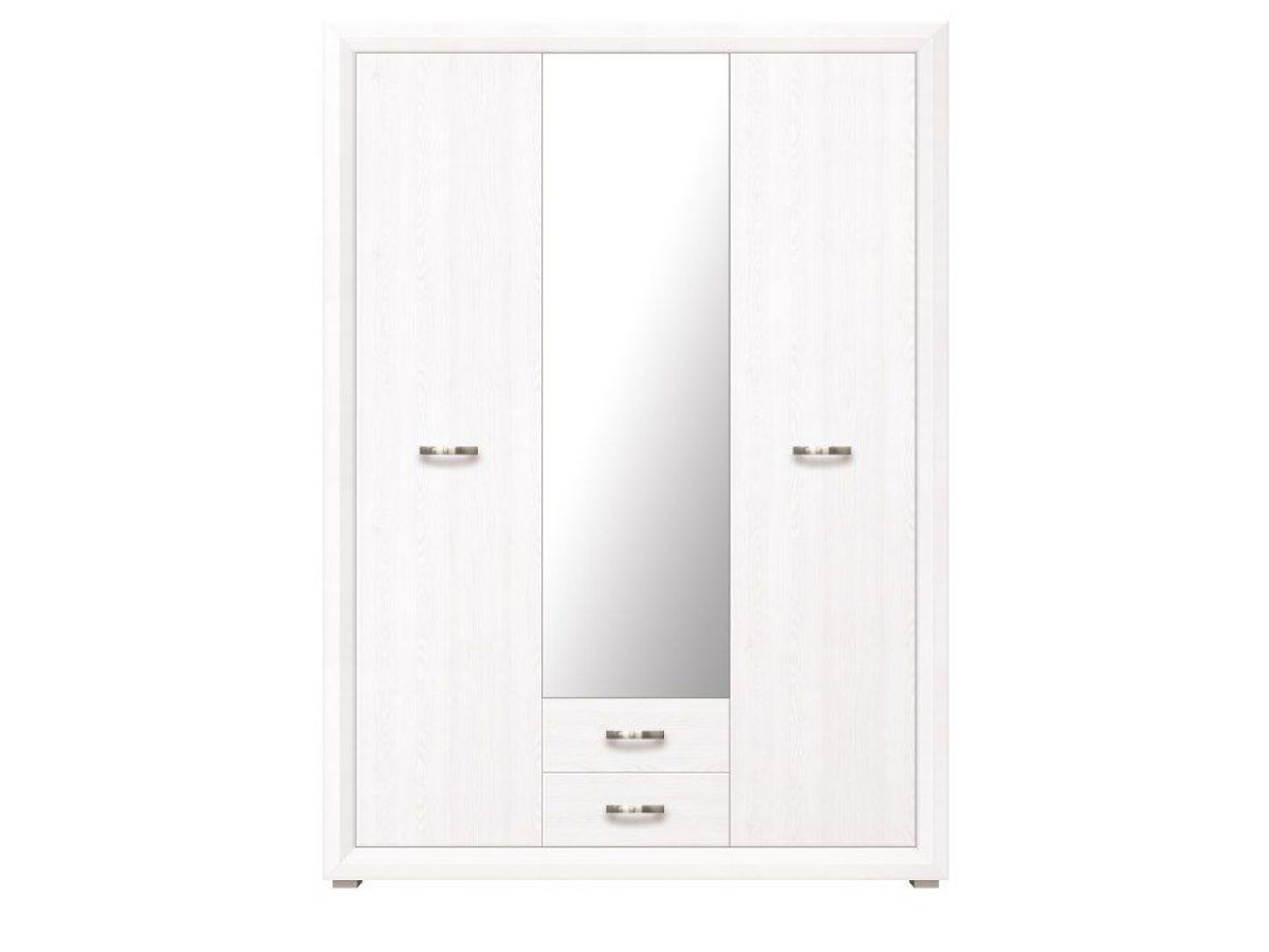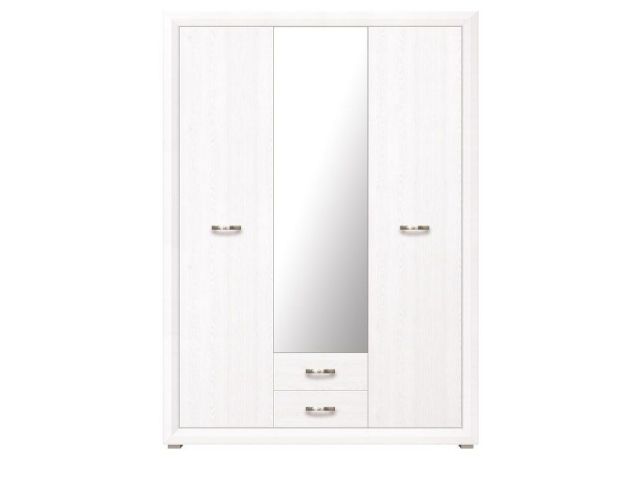 Великолепные белоснежные фасады коллекции удачно контрастируют со вставками из «ореха лион», продолговатые металлические ручки добавляют изящества, а подсветка стеклянных полок выгодно подчеркивает древесную структуру дерева.