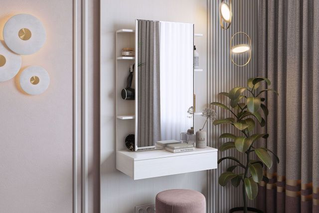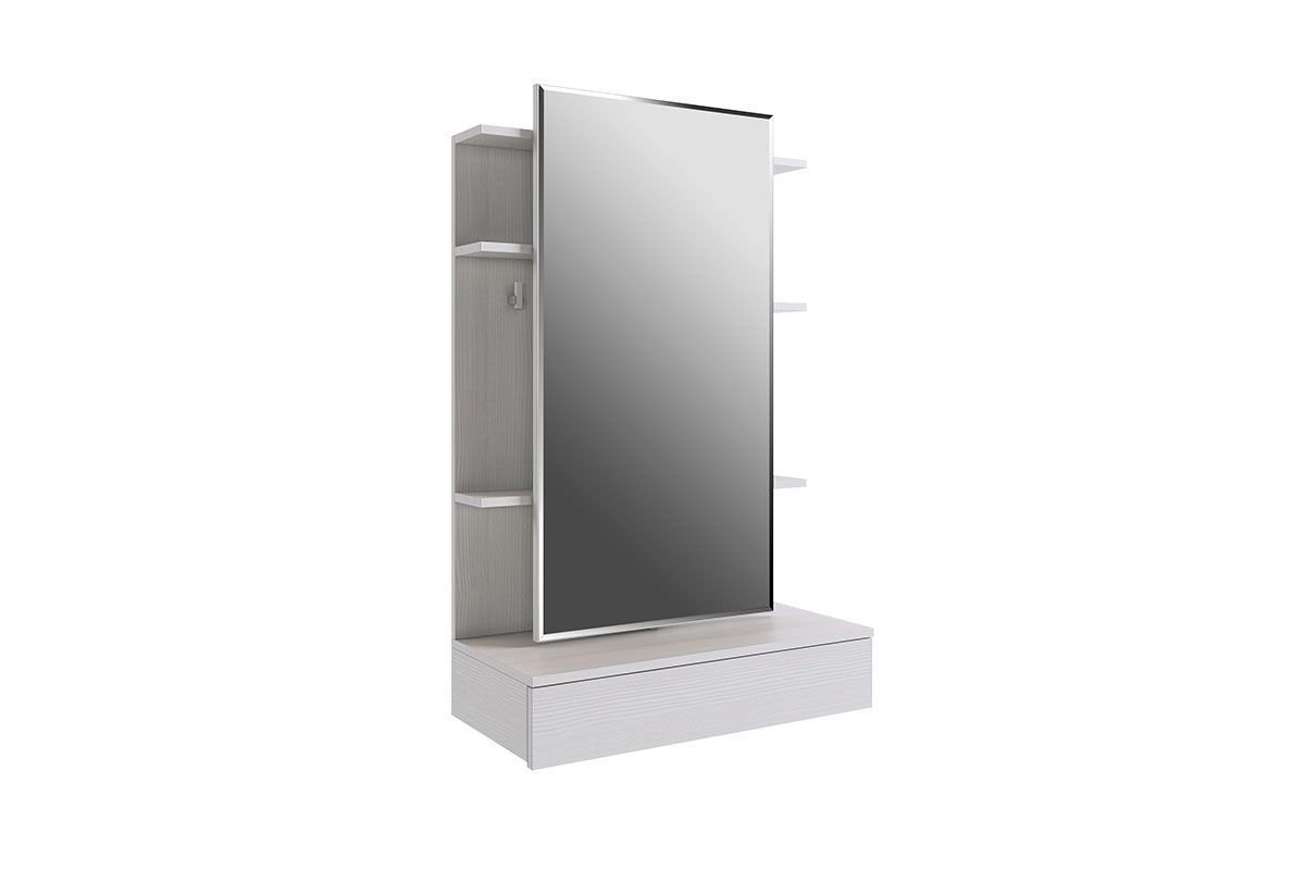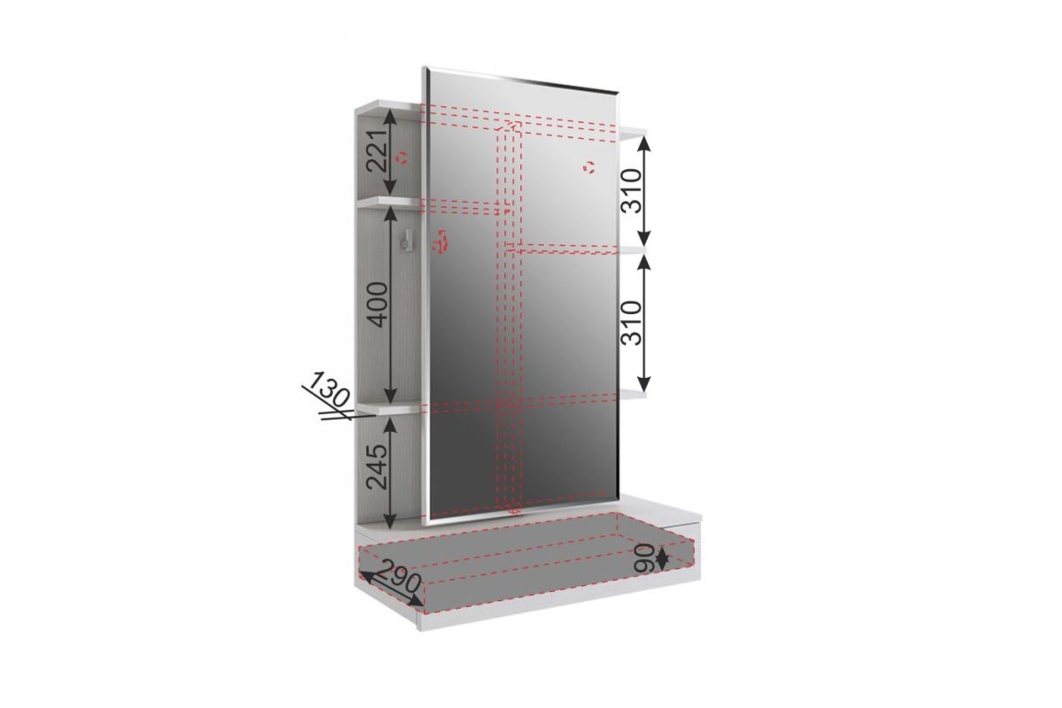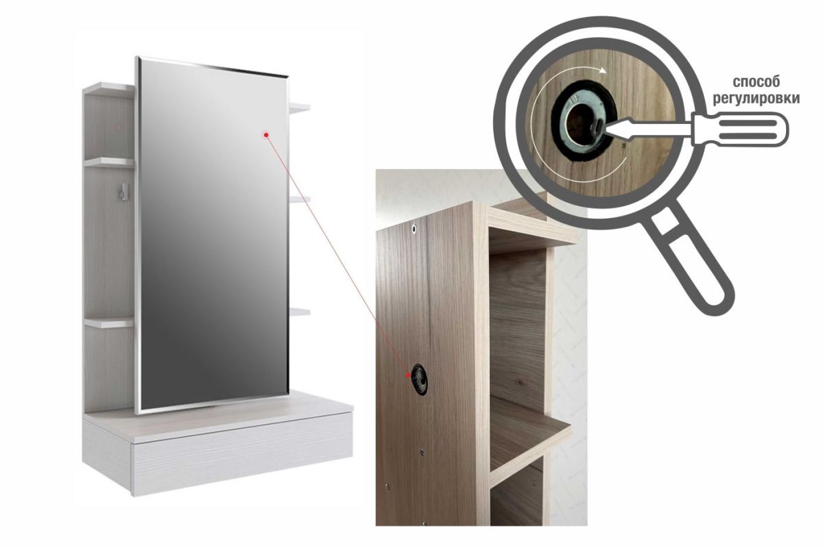 Дополнительные полки и крючки за зеркалом.