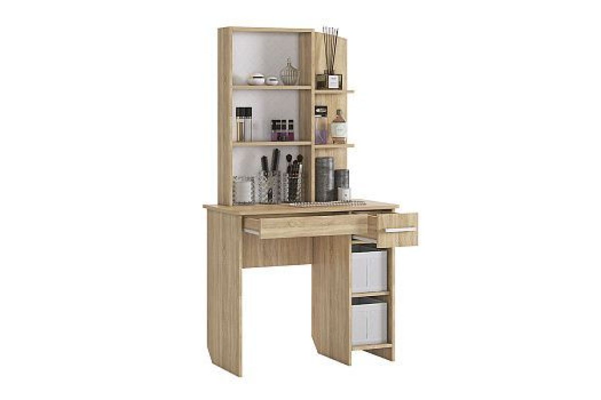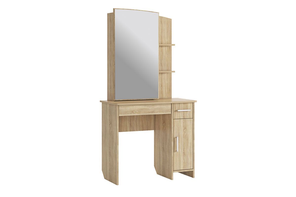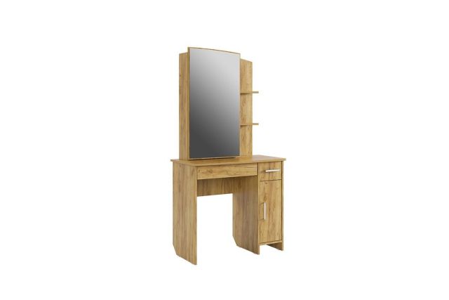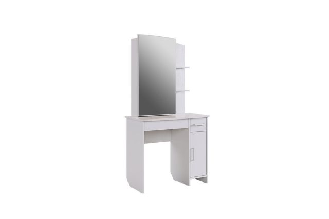 Состоит из: зеркала, полками открытыми и закрытыми, а также ящиками выкатными для мелочей.