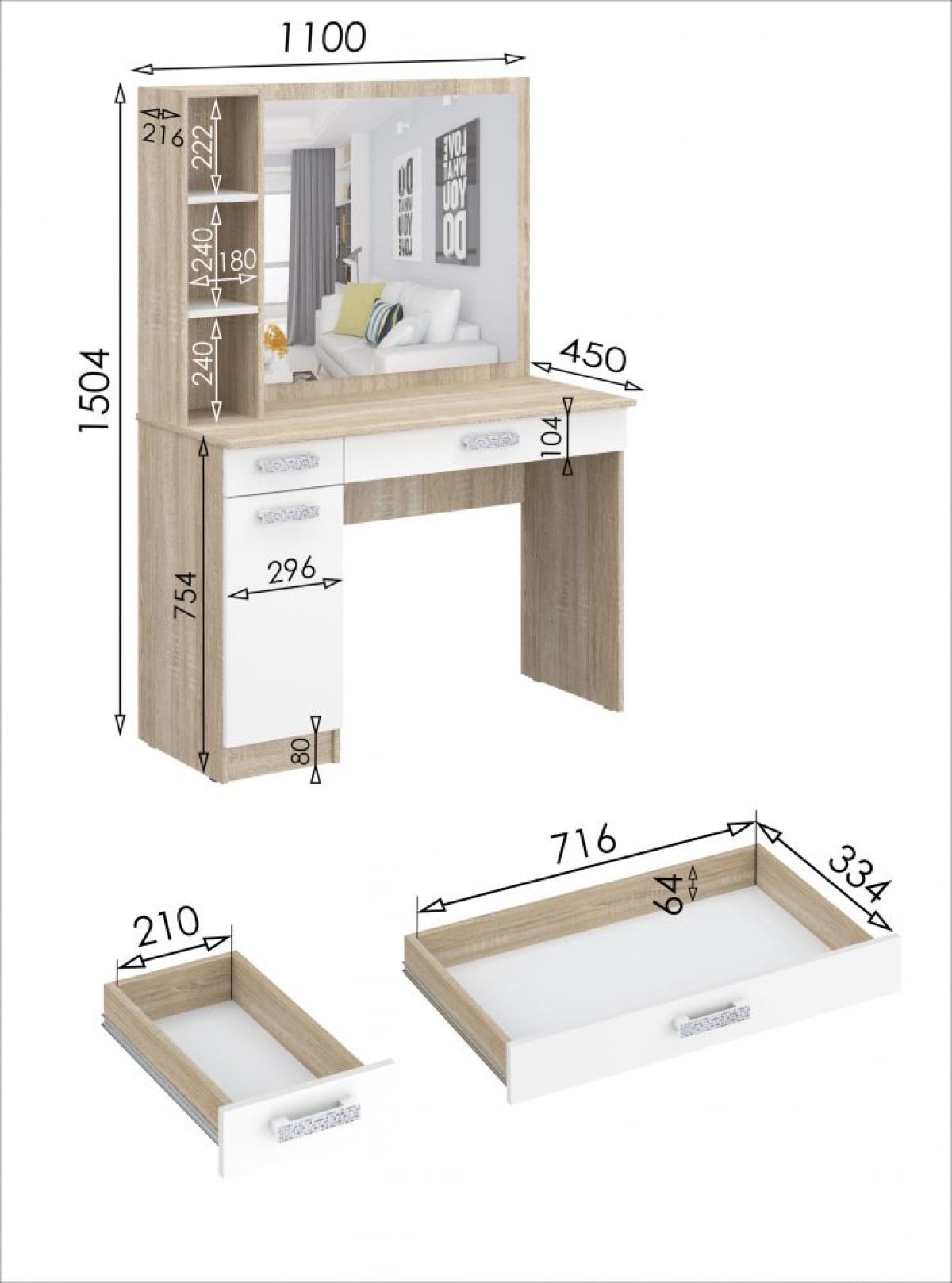 Стол туалетный с зеркалом Салоу
