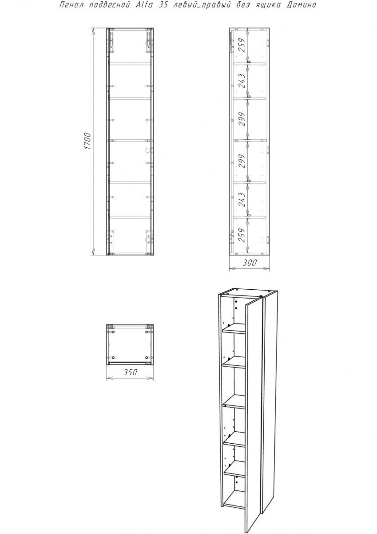 Пенал подвесной Alfa 35 левый/правый без ящика Домино (DA6101P)