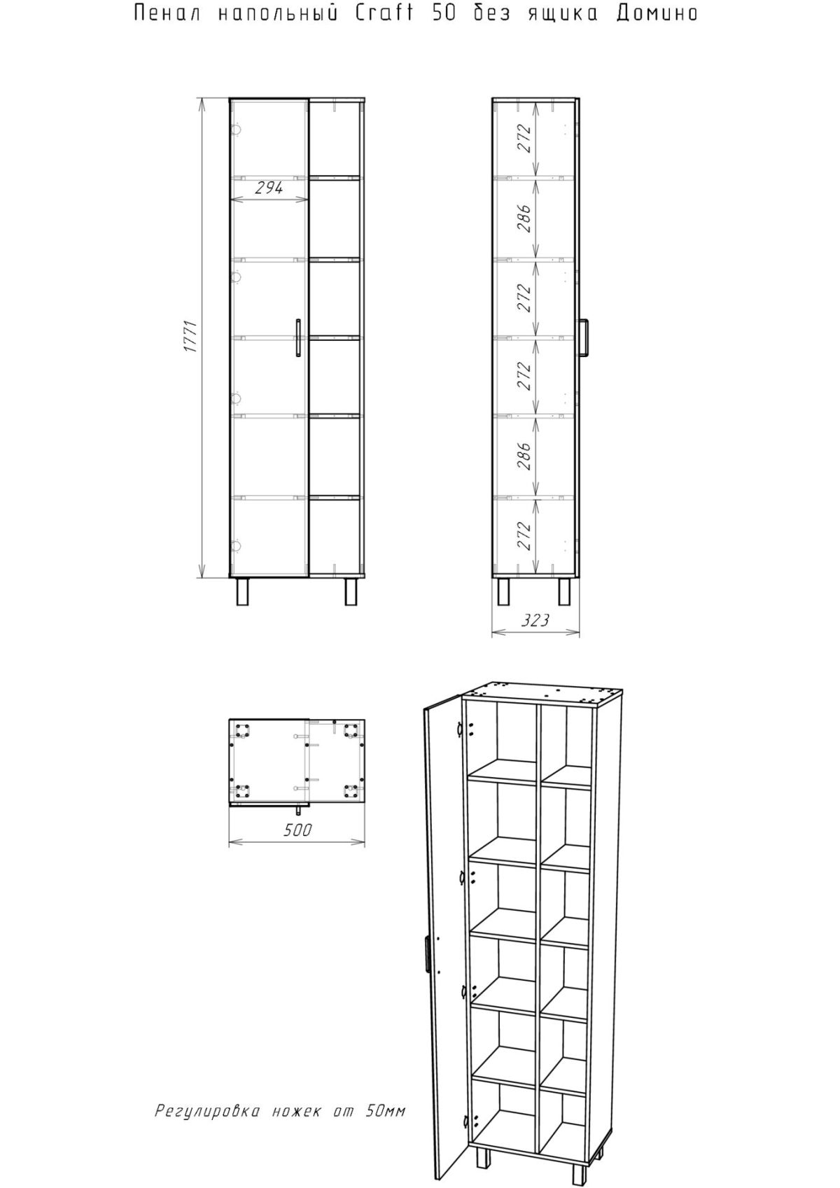 Пенал напольный Craft 50 без ящика Домино (DCr2207P)