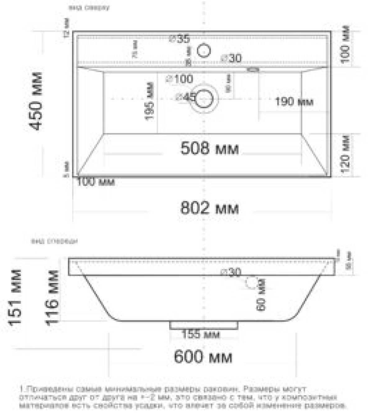 Вид раковины: Накладная (мебельная)