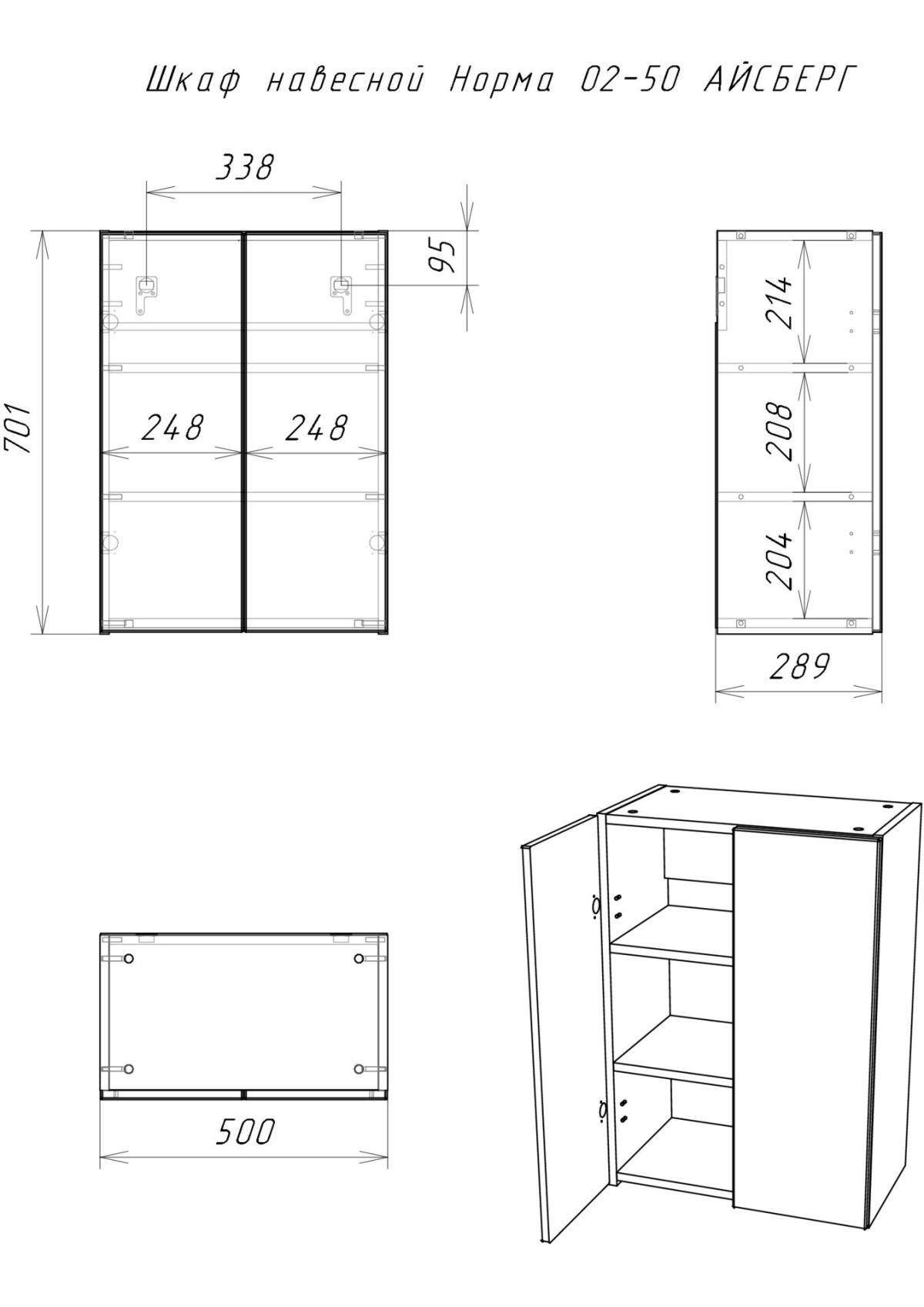 Шкаф навесной Норма 02-50 АЙСБЕРГ (DA1650H)