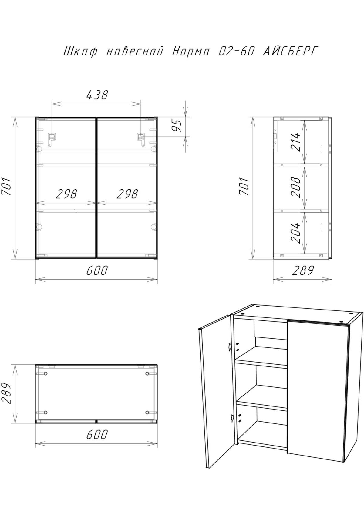 Шкаф навесной Норма 02-60 АЙСБЕРГ (DA1653H)